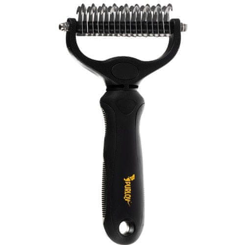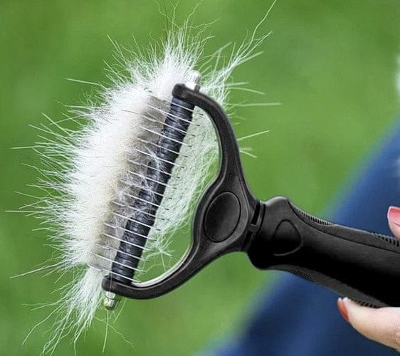 • VARNO IN ZABAVNO ZA ŽIVALI - zobje trimera so standardno nameščeni na ročaju v eni liniji in imajo zaobljene konce. Vse zato, da ne poškoduje našega ljubljenčka med česanjem in vodi k prijetnemu in sproščujočemu občutku med masiranjem kože med česanjem. Brušeni so samo notranji robovi, ki niso v stiku s kožo našega ljubljenčka. Na ta način je odstranjevanje vozlov veliko lažje.