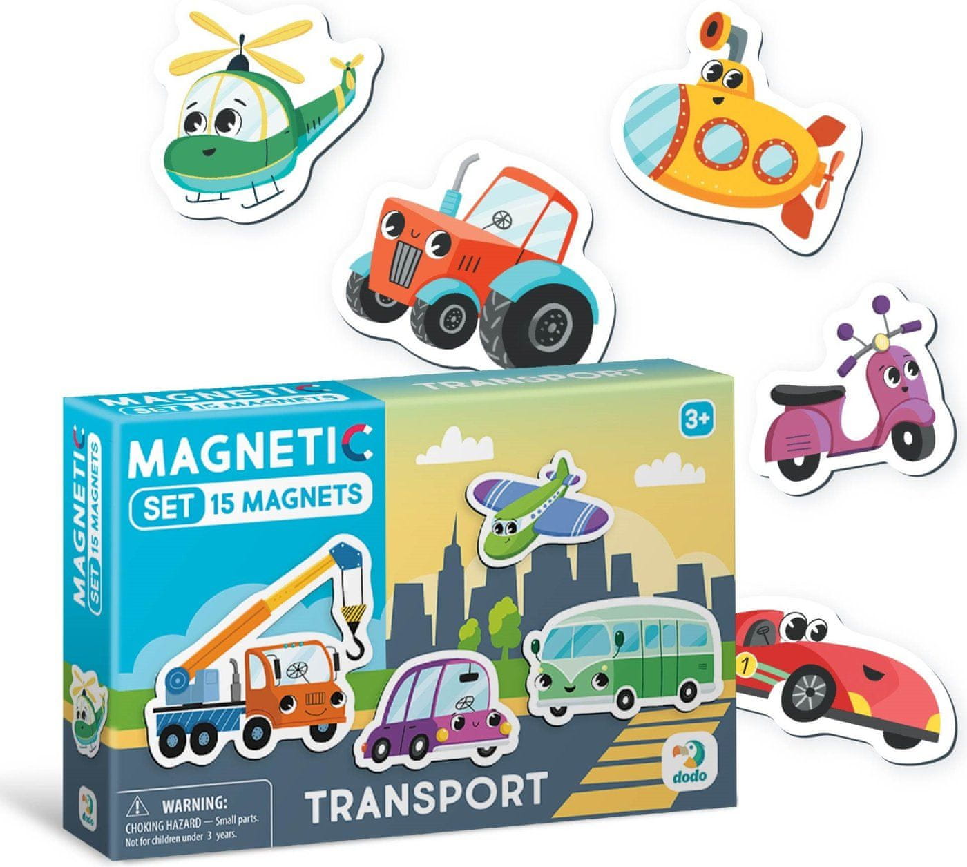 Komplet obrisnih magnetov z motivom prevoznih sredstev. Celoten opis