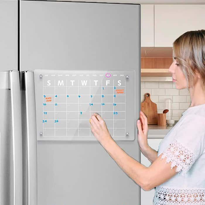 • 4 močni magneti zagotavljajo, da se koledar in tabla varno pritrdita na hladilnik ali druge kovinske površine