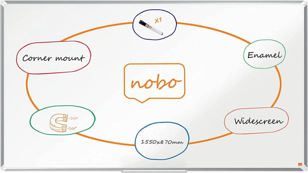 Nobo magnetna tabla – trpežna, gladka in preprosta za čiščenje. – jeklena magnetna tabla širokega fo Celoten opis