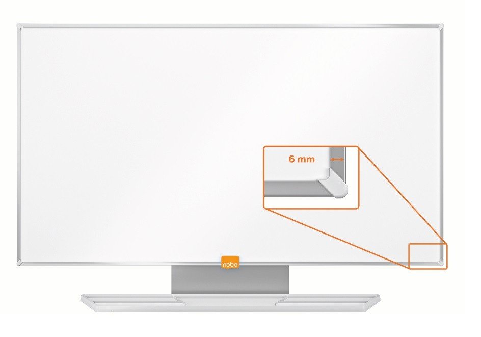 Širokozaslonska tabla in sodoben okvir zagotavljata široko površino za pisanje. Površina table je z magnetnim emajlom in zagotavlja vrhunsko stopnjo odpornosti za pogosto uporabo. Prostorni pladenj za pisala se nahaja pod tablo.