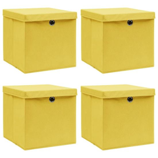 shumee Škatle za shranjevanje s pokrovi 4 kosi rumene 32x32x32cm blago