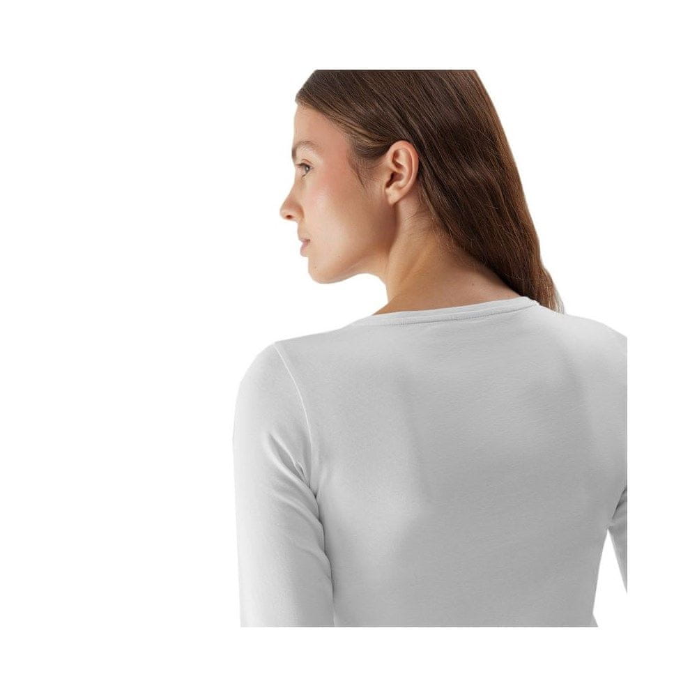Ženska majica z dolgimi rokavi 4F F167 bela 4FAW23TLONF167 10S Ta ženska majica z dolgimi rokavi 4F je odlična za vsakodnevno nošenje. Klasični kroj. Material je kombinacija bombaža in elastičnih vlaken. Okrogel izrez. Material: 95 % bombaž, 5 % elastan Celoten opis