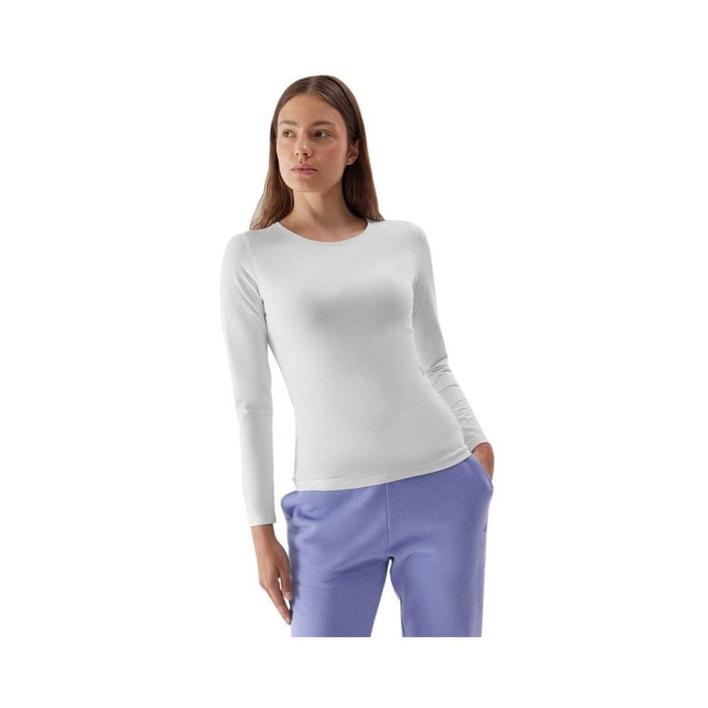 Ženska majica z dolgimi rokavi 4F F167 bela 4FAW23TLONF167 10S Ta ženska majica z dolgimi rokavi 4F je odlična za vsakodnevno nošenje. Klasični kroj. Material je kombinacija bombaža in elastičnih vlaken. Okrogel izrez.
