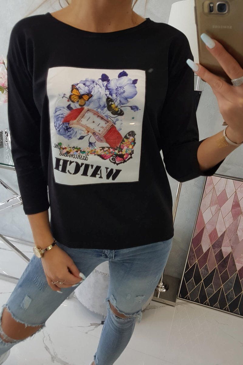 Ženska majica s potiskom Shalle črna Universal Celoten opis