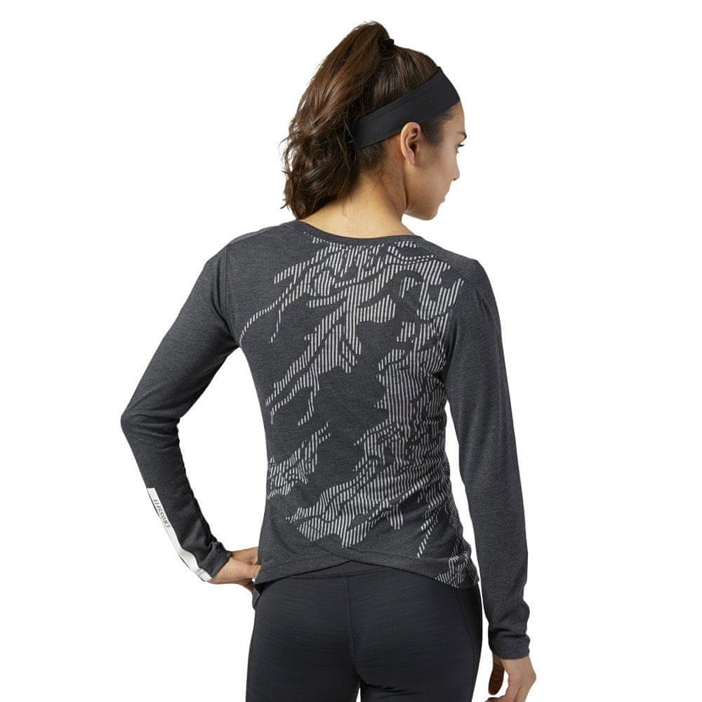 Ženska vadbena majica Reebok CrossFit Burnout z dolgimi rokavi se ponaša s prožnostjo, lahkotnostjo in športnim dizajnom, ki zagotavlja dodatno motivacijo med vadbo. Zgornji del ima asimetričen hrbtni del, detajle blagovne znamke Reebok in privlačen črtasti potisk.