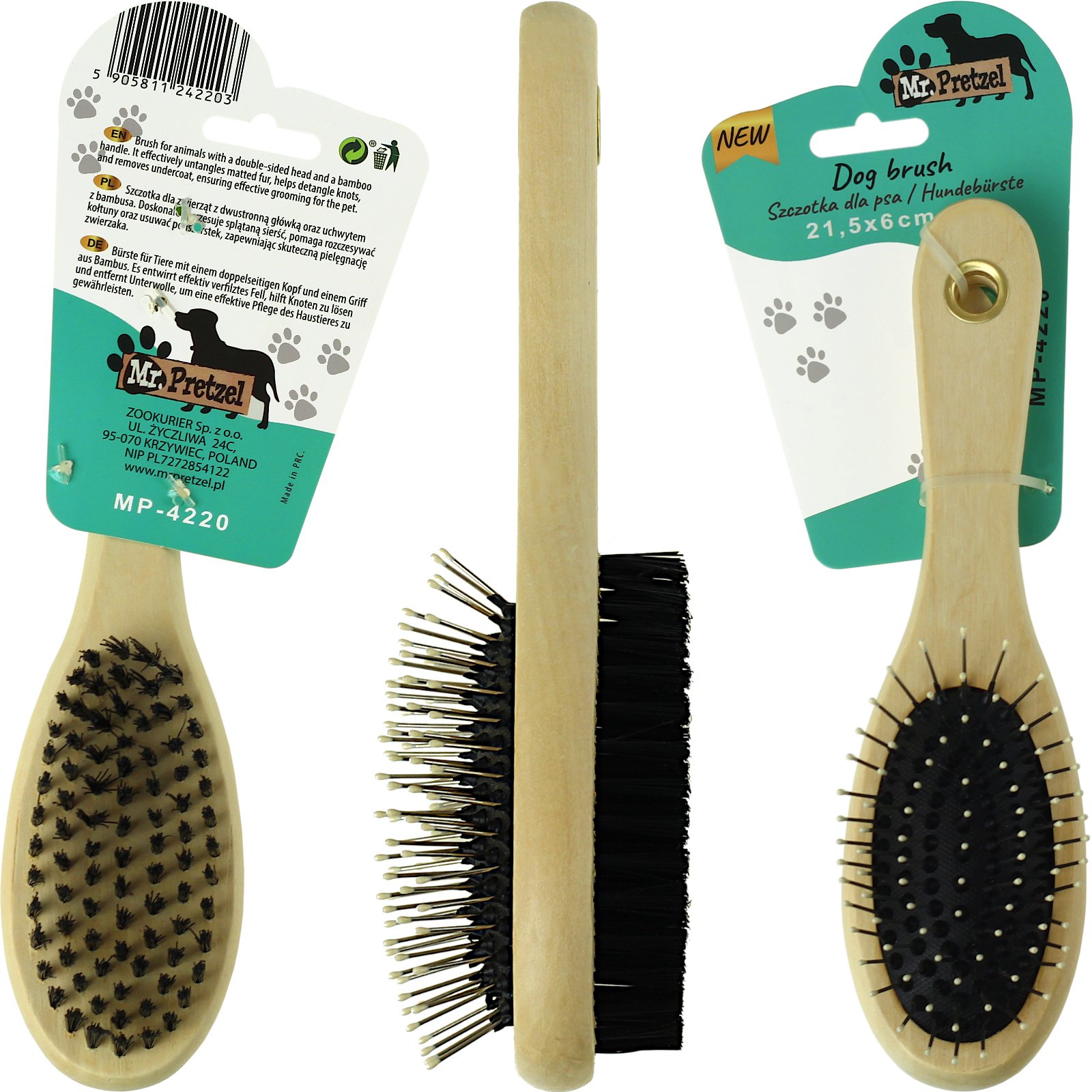 Dvostranska krtača Mr. Pretzel z borovimi konicami za podlanko, pasjo in mačjo dlako Celoten opis