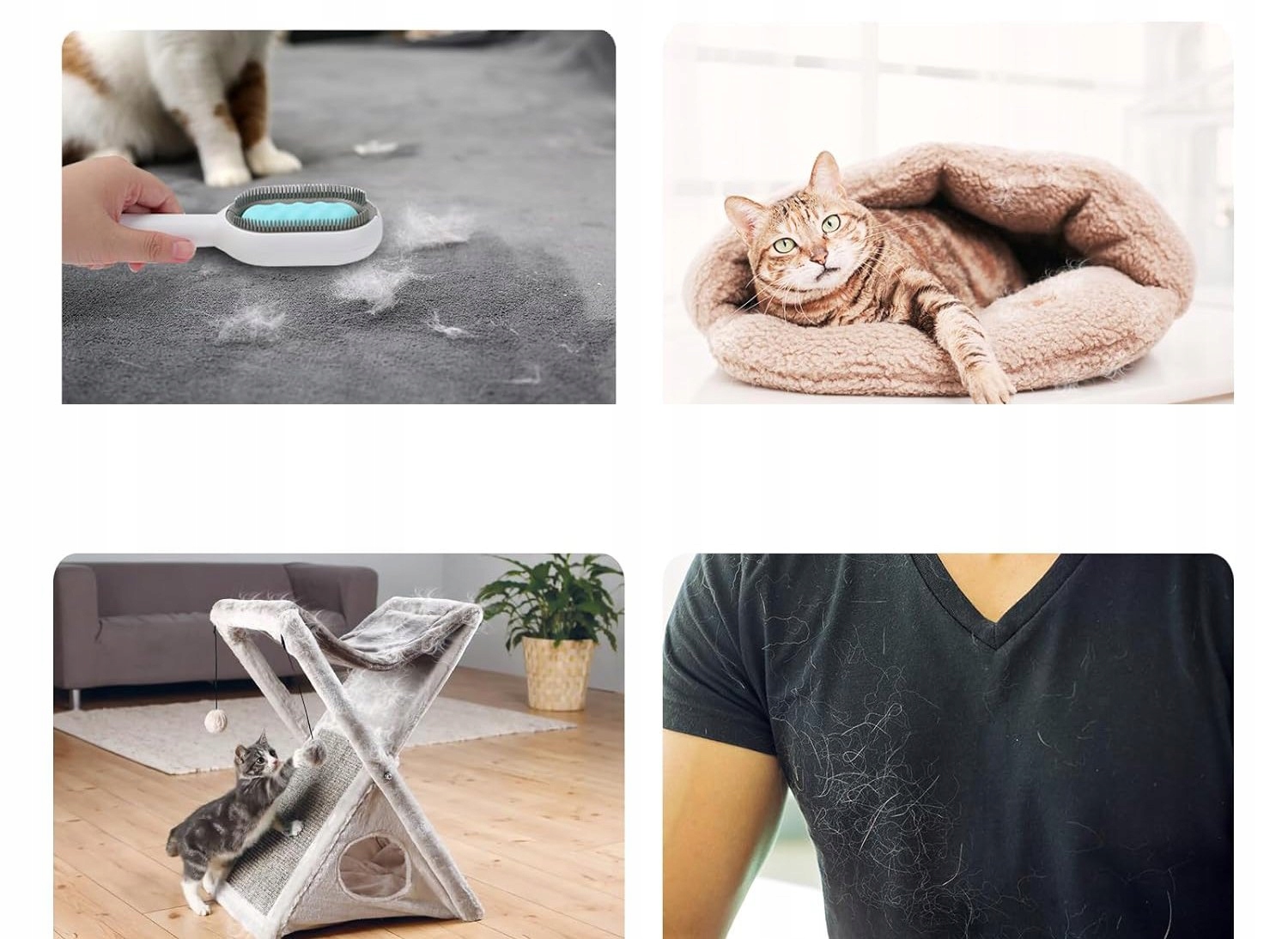 • Oblačila: Učinkovito odstranjuje dlake s tkanin in jih pusti čiste.