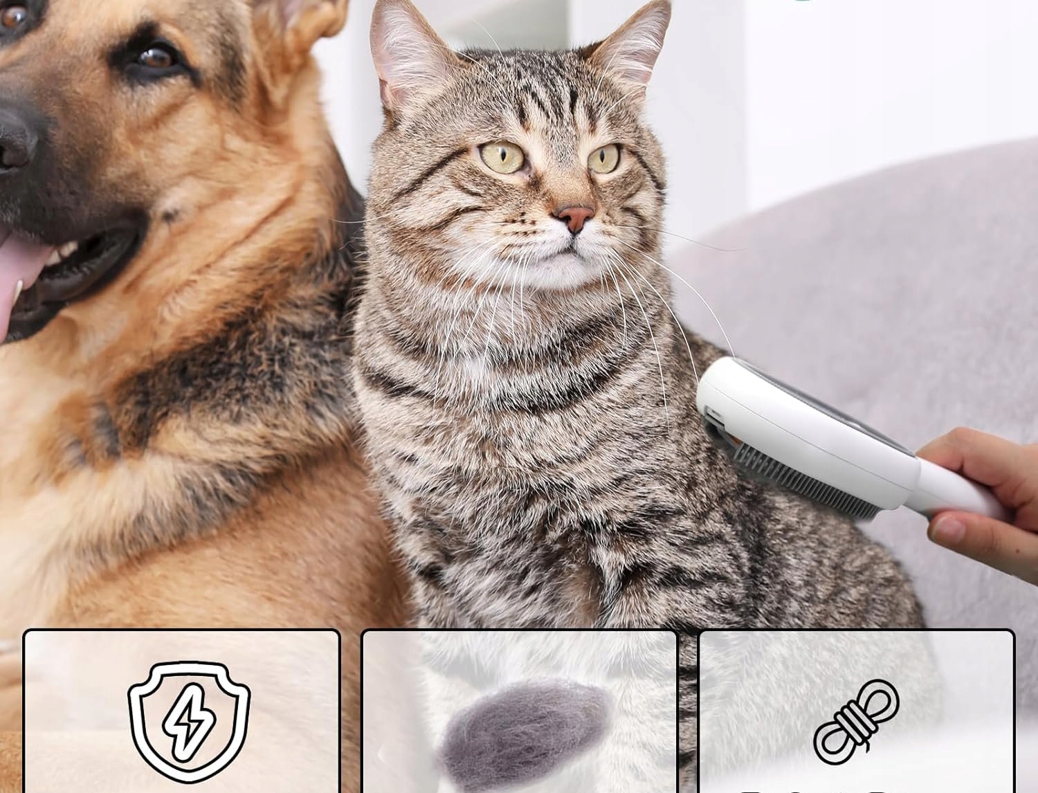• Varnost hišnih ljubljenčkov: Krtača je varna in nežna, tudi za najobčutljivejše hišne ljubljenčke.