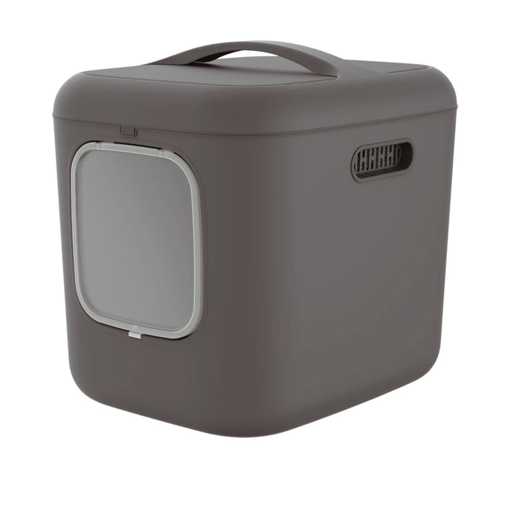 - Enostavna uporaba – Ergonomski ročaji olajšajo prenašanje in vsakodnevno nego mačjega stranišča. Trdni ročaji ob straneh omogočajo udobno in varno dvigovanje in prenašanje mačjega stranišča. To je še posebej uporabno pri praznjenju stranišča, menjavi stelje ali čiščenju. Zahvaljujoč dobro premišljeni zasnovi je za prenašanje mačjega stranišča potrebno malo truda, kar je še posebej pomembno za starejše ali tiste, ki imajo težave z dvigovanjem težkih predmetov. Poleg tega enostavna demontaža posameznih komponent omogoča hitro in higiensko nego mačjega stranišča.