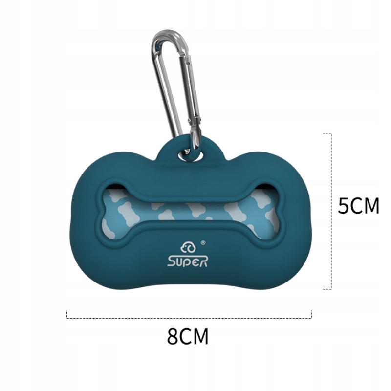 Praktičen in eleganten dozator vrečk za pasje iztrebke, izdelan iz trpežnega, mehkega silikona. Opremljen z robustno karabino, ga lahko enostavno pritrdite na ovratnico, povodec ali nahrbtnik. Posoda ima kompaktno, priročno obliko, podobno kosti, kar ji doda čar. Popolna za vsakodnevne sprehode s psom.