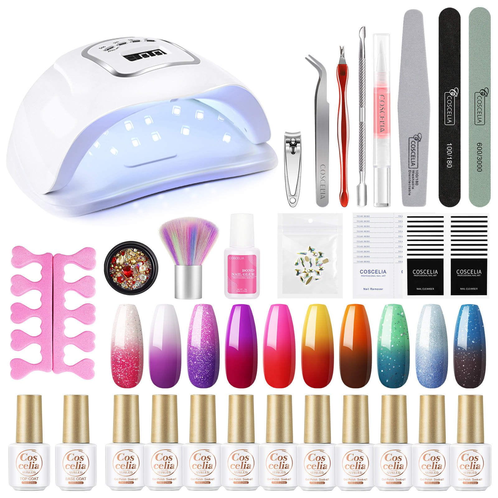 COSCELIA Set za manikuro z UV LED lučko 80W in trajnimi laki, ki spreminjajo barvo, 28-delni