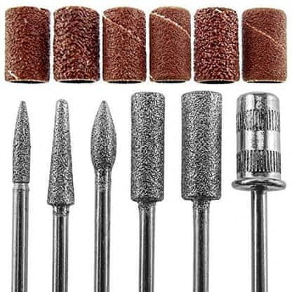 Električna naprava za piljenje nohtov Komplet za manikuro in pedikuro s 6 brusilnimi nastavki (5 diamantnih brusilnih nastavkov, 1 brusilni nastavek iz korunda s 6 brusilnimi trakovi)  width=