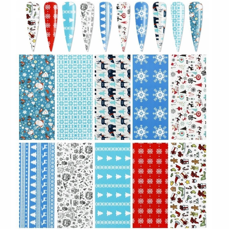 10× BOŽIČNI SET FOLIJE ZA PRENOS NOHTOV 10 cm x 4 cm Celoten opis