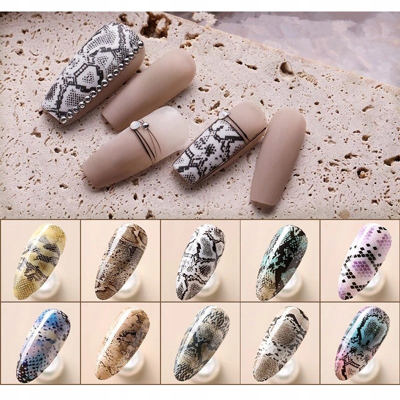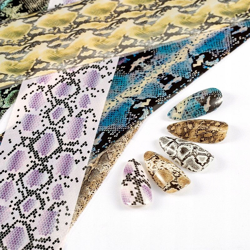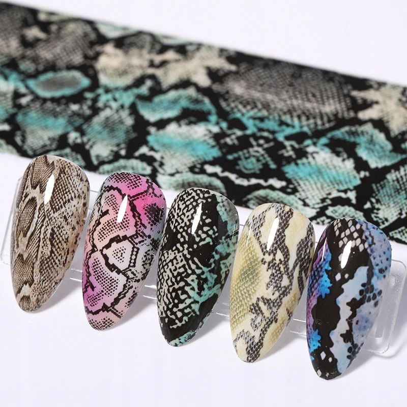 10× FOLIJA ZA PRENOS NOHTOV 10cmx4cm KOMPLET KAČJA KOŽA, KAČA, SKRILAVEC Celoten opis