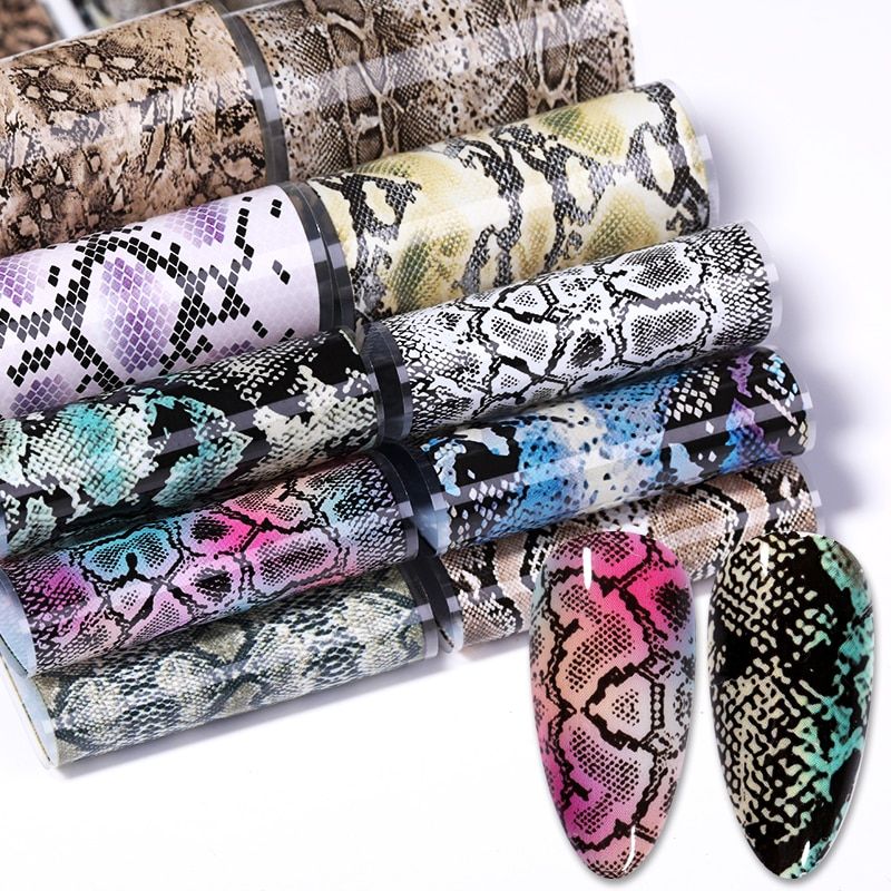 shumee 10x FOLIJA ZA PRENOS NOHTOV 10cmx4cm KOMPLET KAČJA KOŽA, KAČA, SKRILAVEC