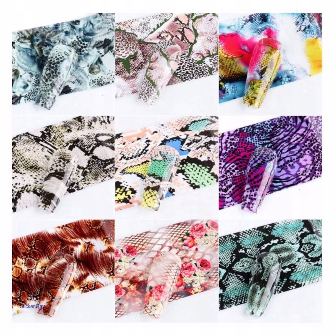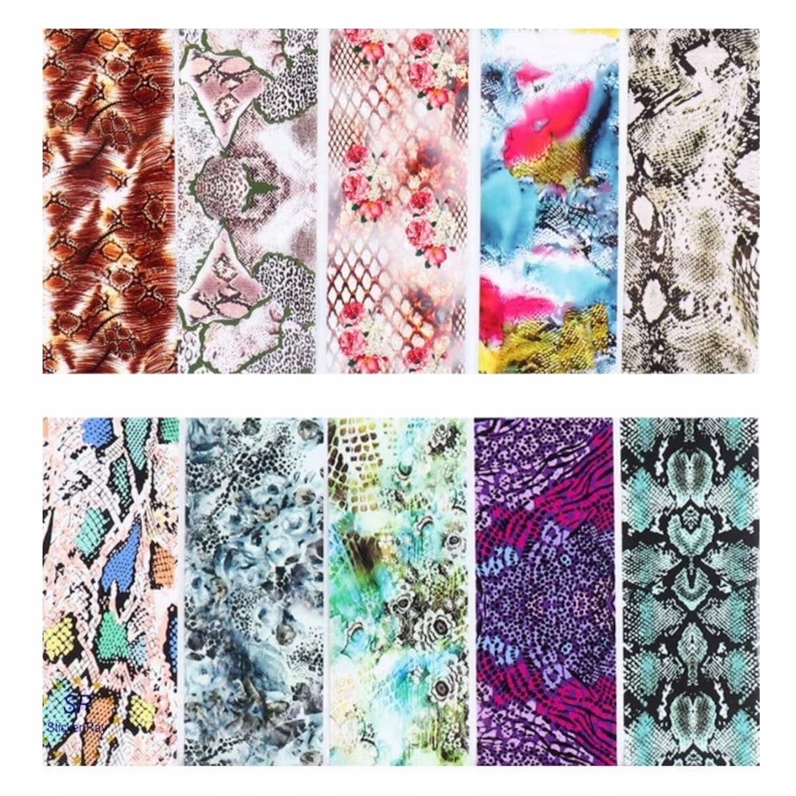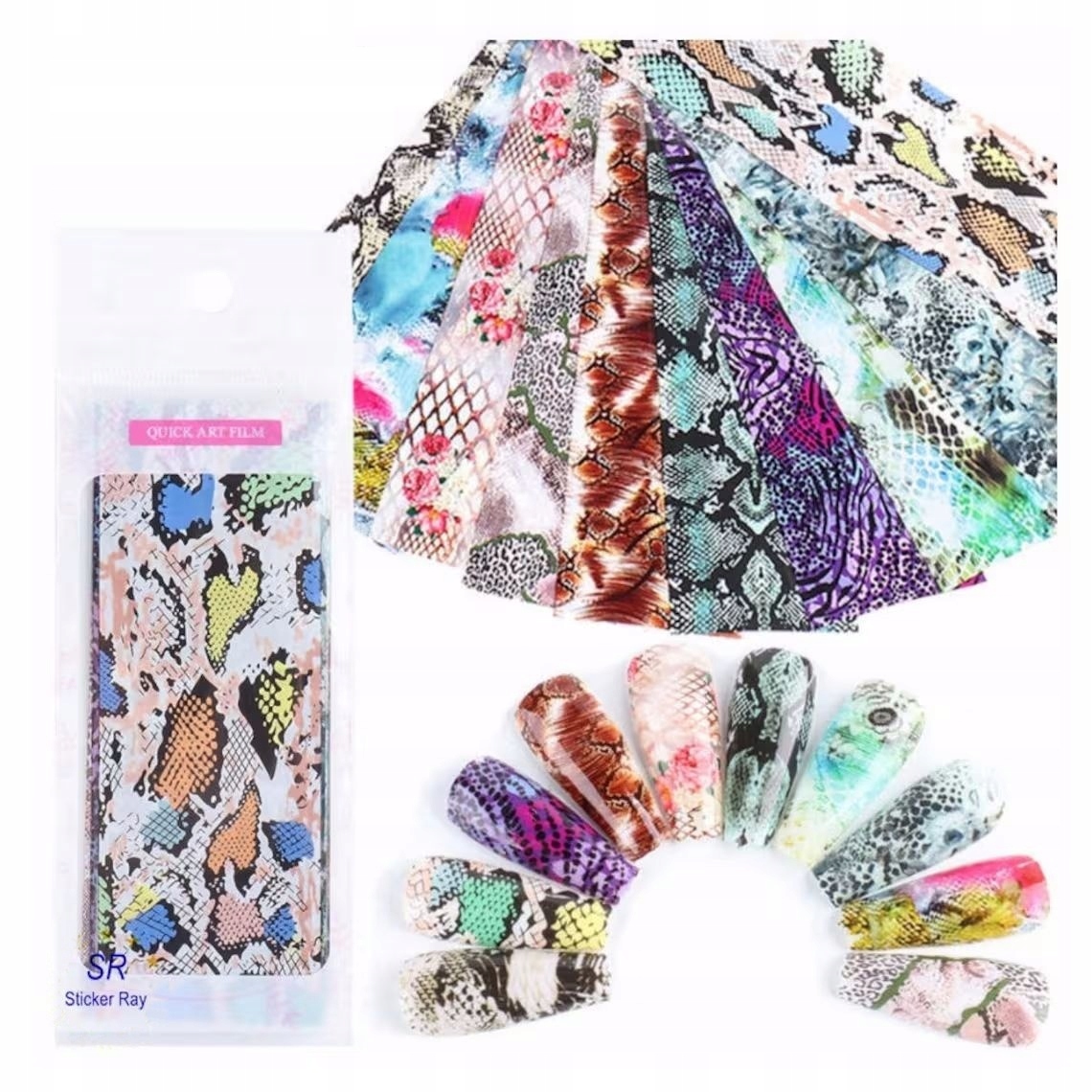 10× FOLIJA ZA PRENOS NOHTOV 10cmx4cm KOMPLET KAČA, KAČJA KOŽA Celoten opis