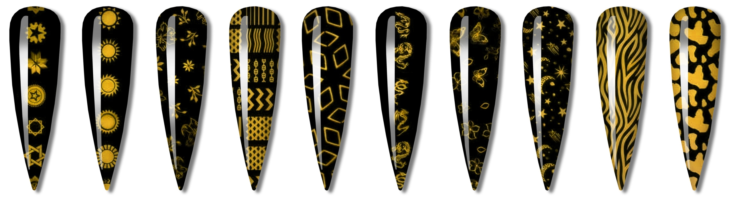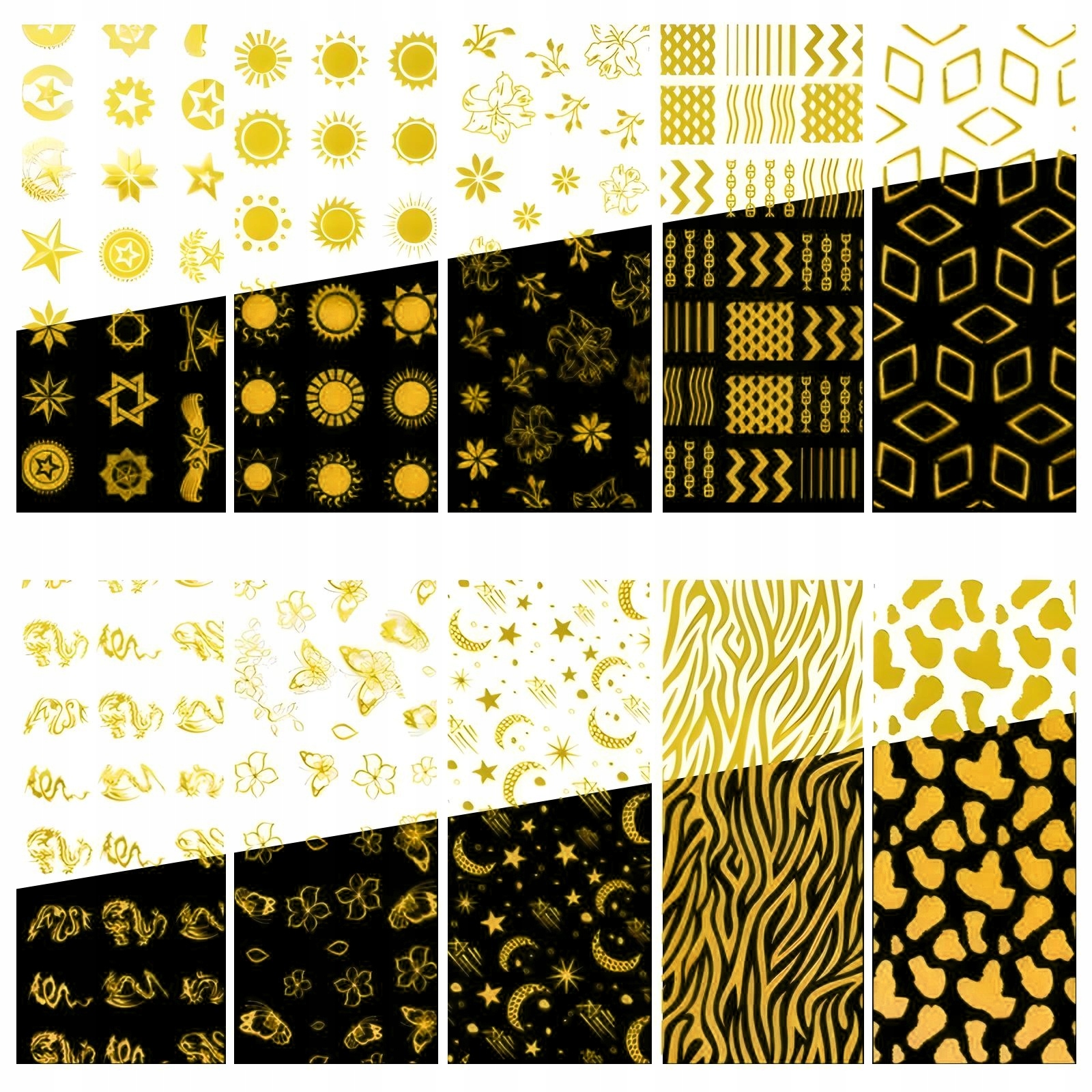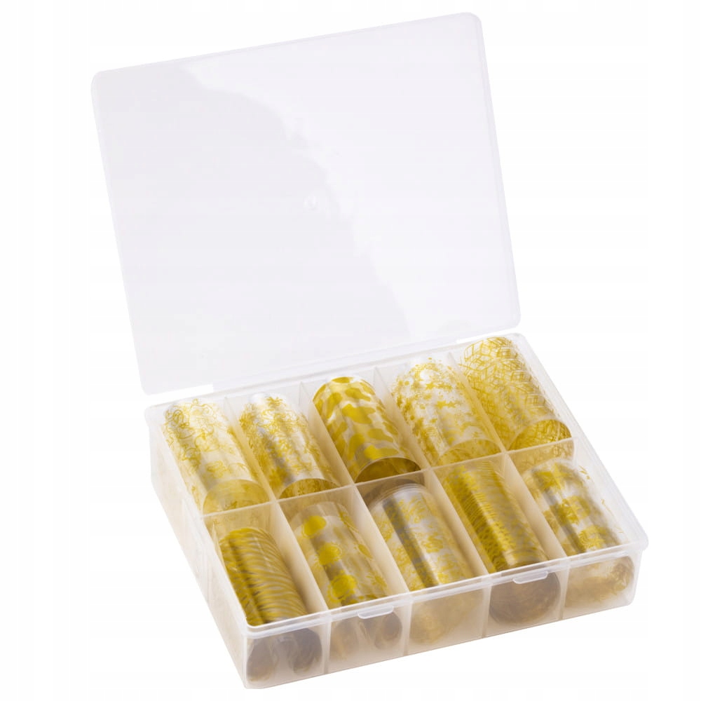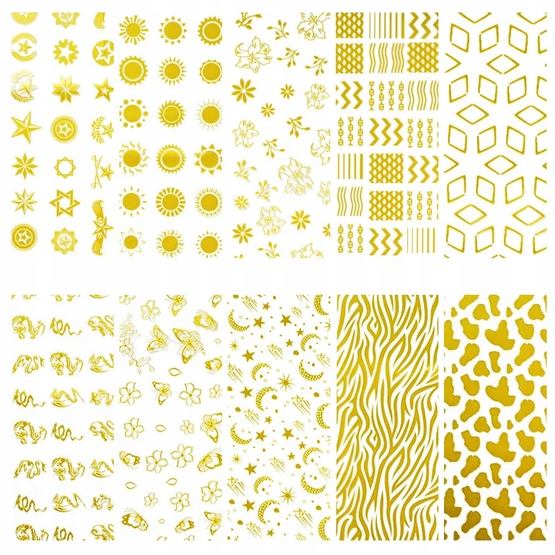 10× FOLIJA ZA PRENOS NOHTOV 100cmx4cm KOMPLET Zlata Leopard Zebra Celoten opis