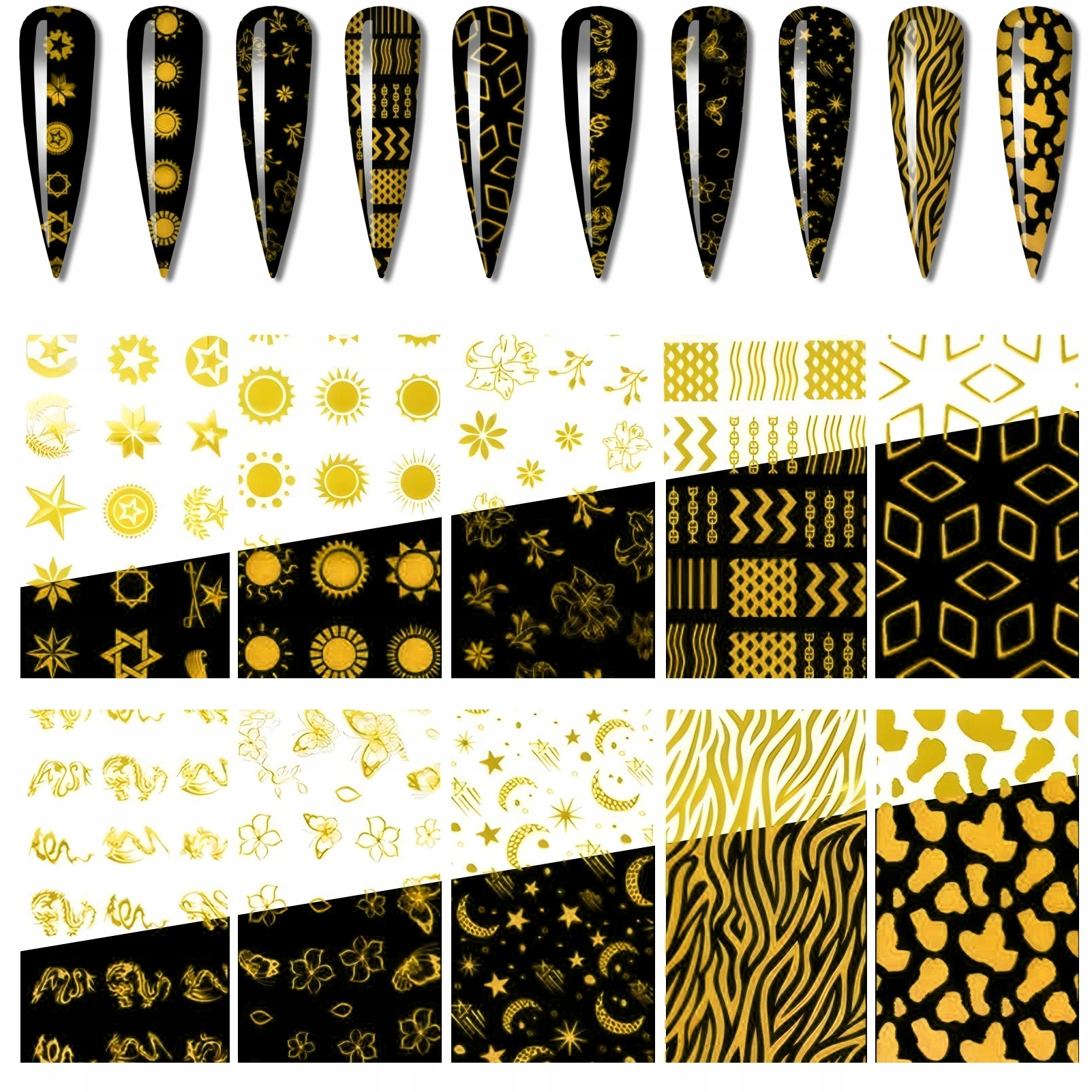 shumee 10x FOLIJA ZA PRENOS NOHTOV 100cmx4cm KOMPLET Zlata Leopard Zebra