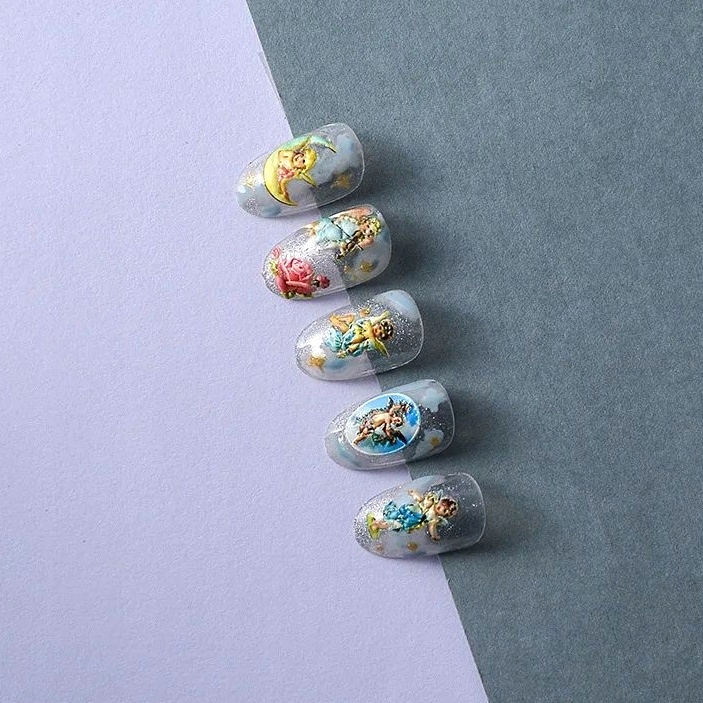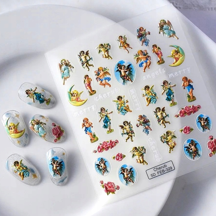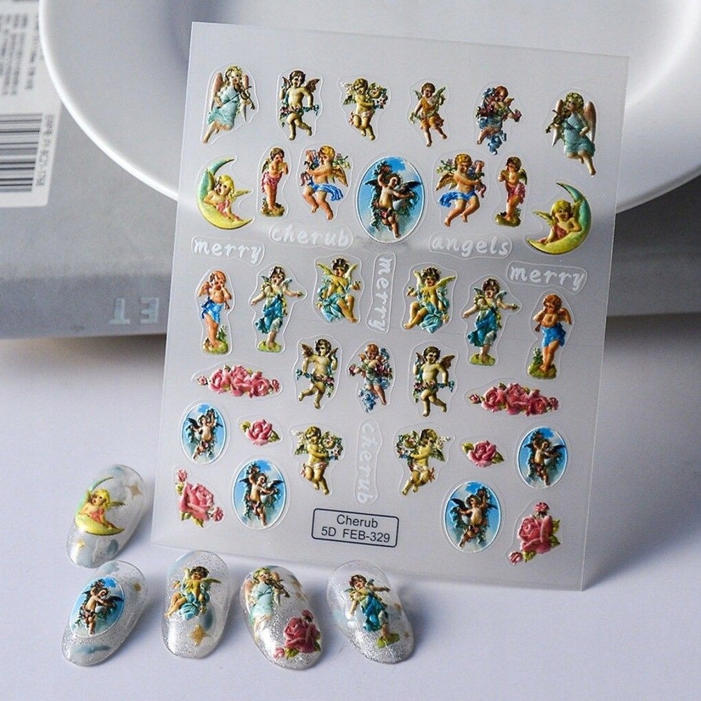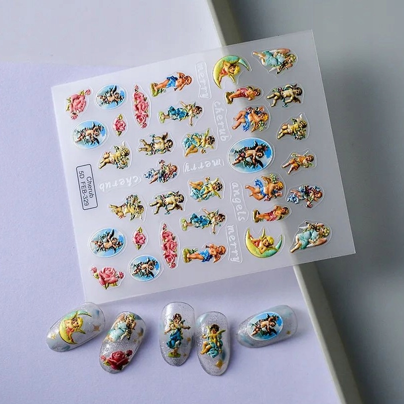 3D nalepke za nohte samolepilne konveksne vzorce angeli Celoten opis