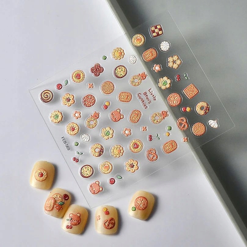 3D nalepke za nohte Samolepilni konveksni vzorci PIŠKOTI PIŠKOTI Celoten opis