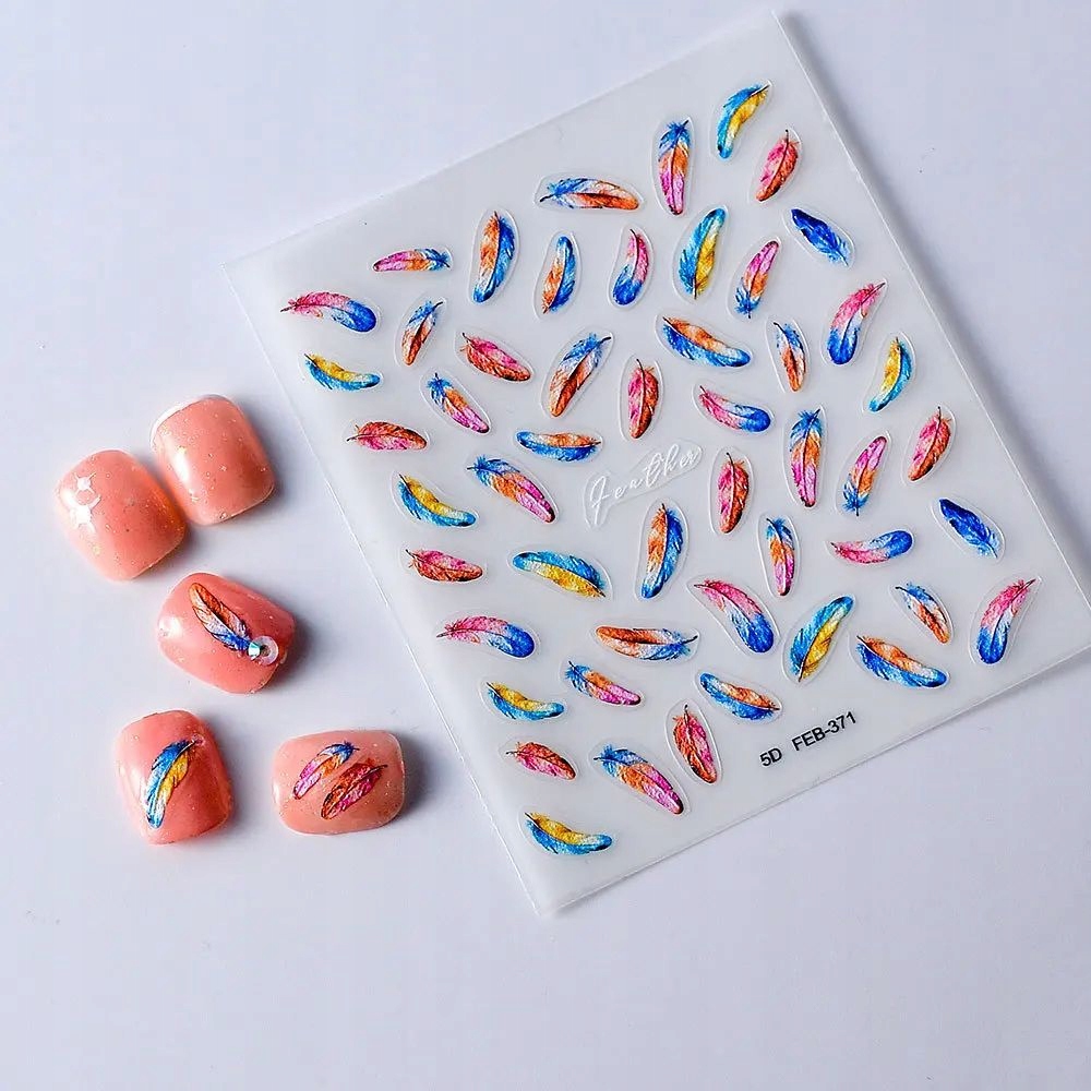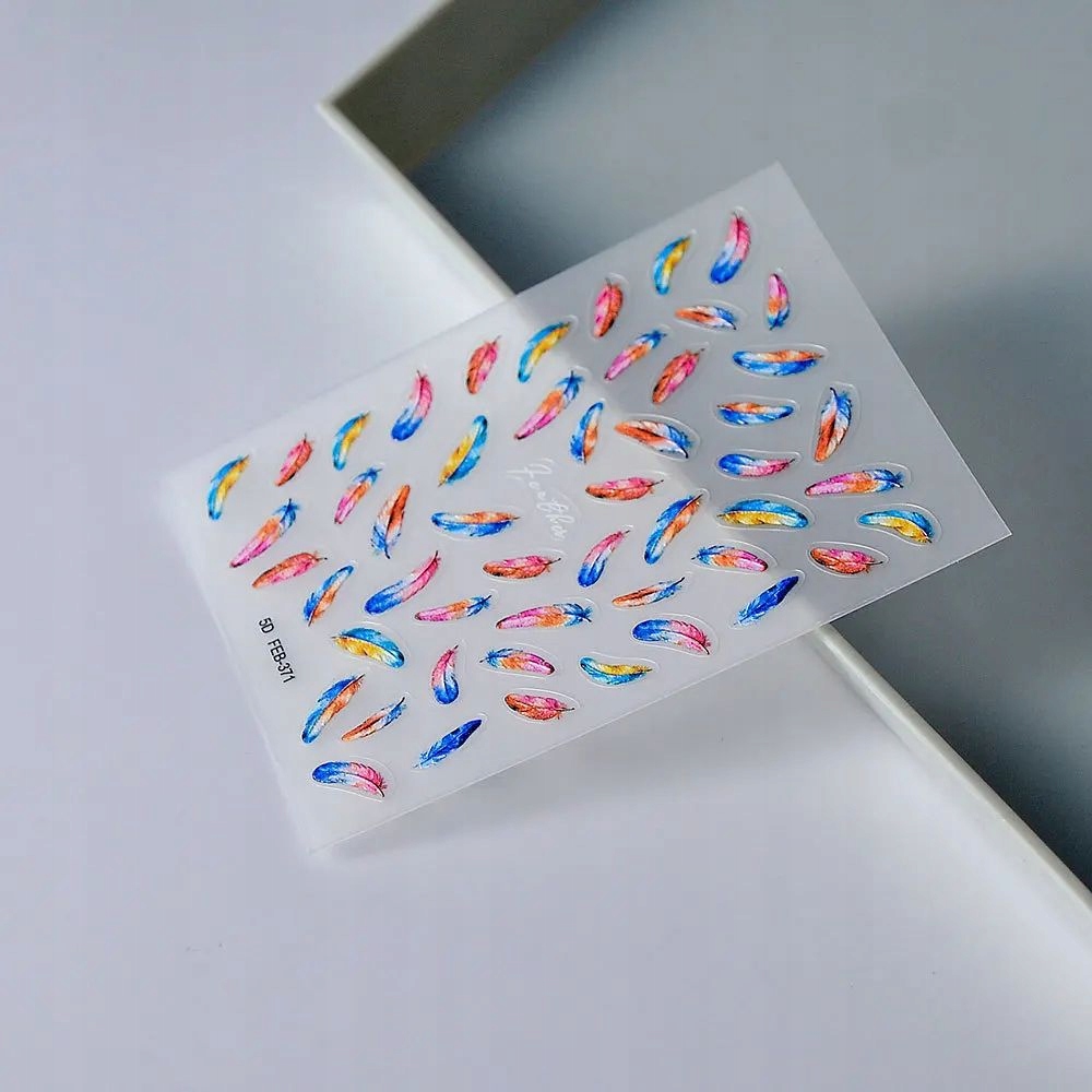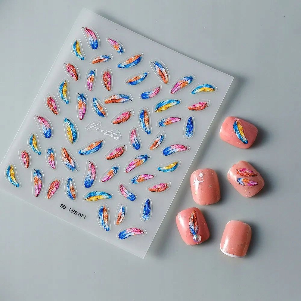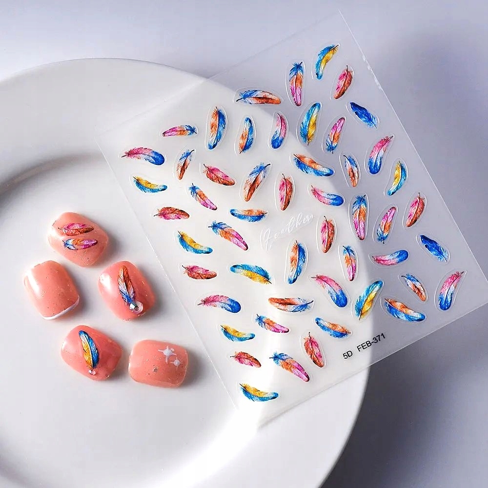 3D nalepke za nohte samolepilne reliefne vzorce PERJE Celoten opis