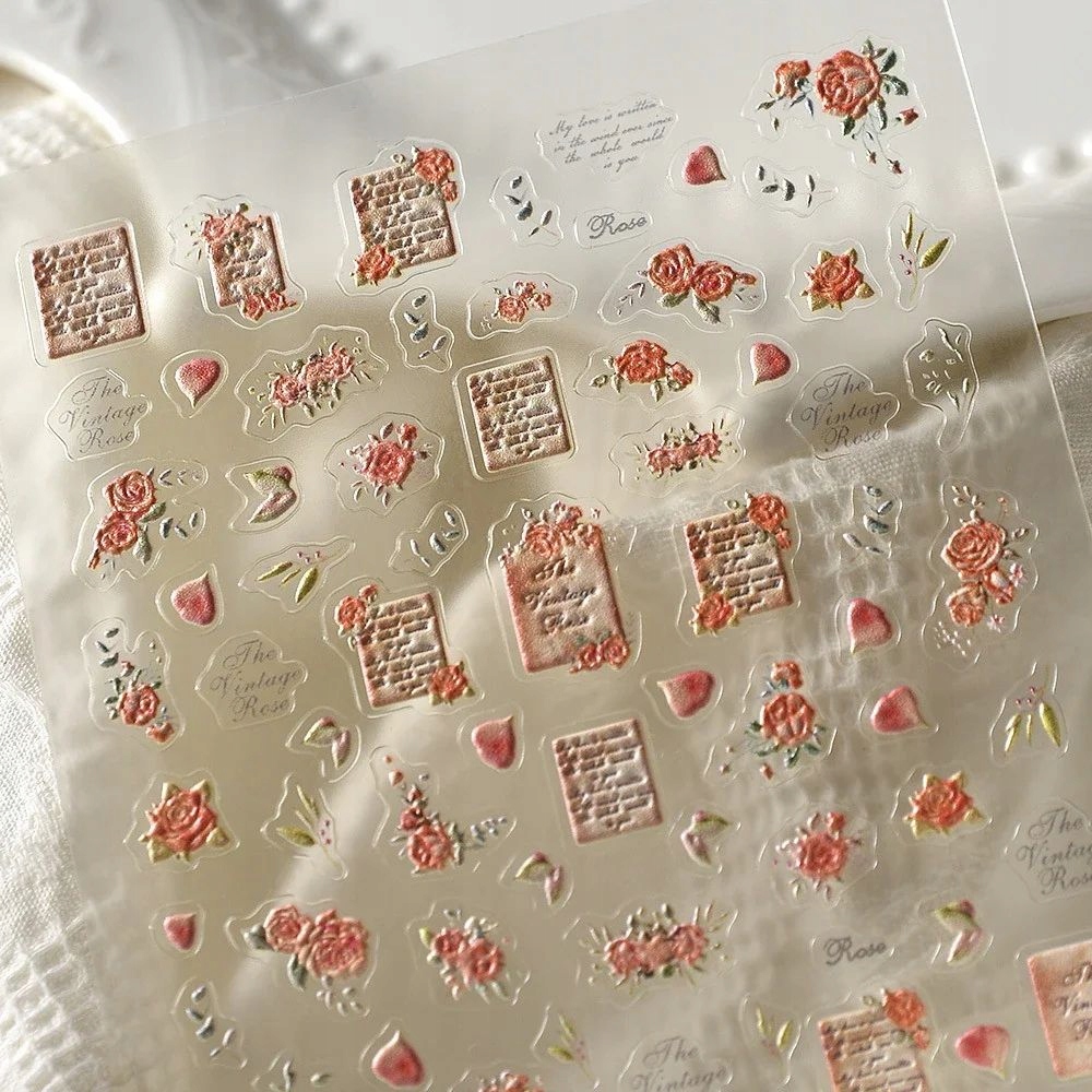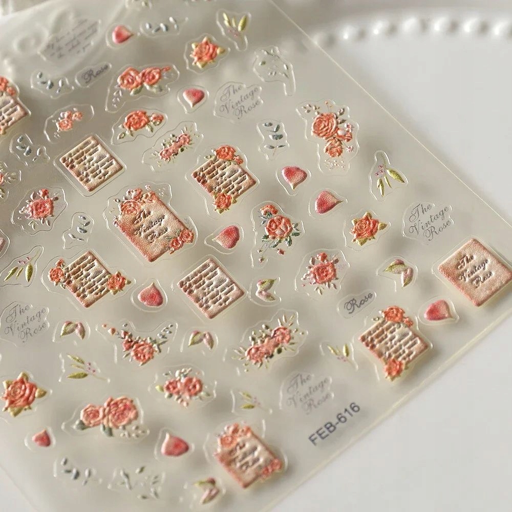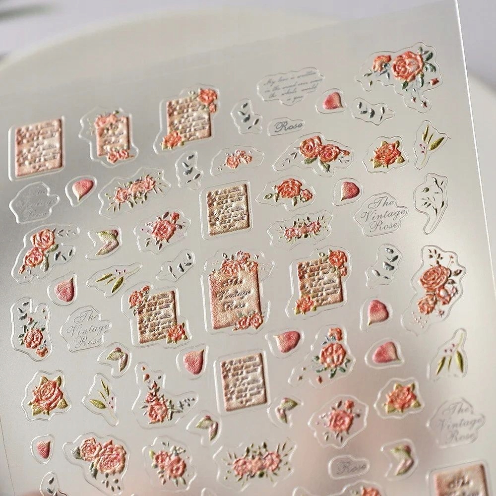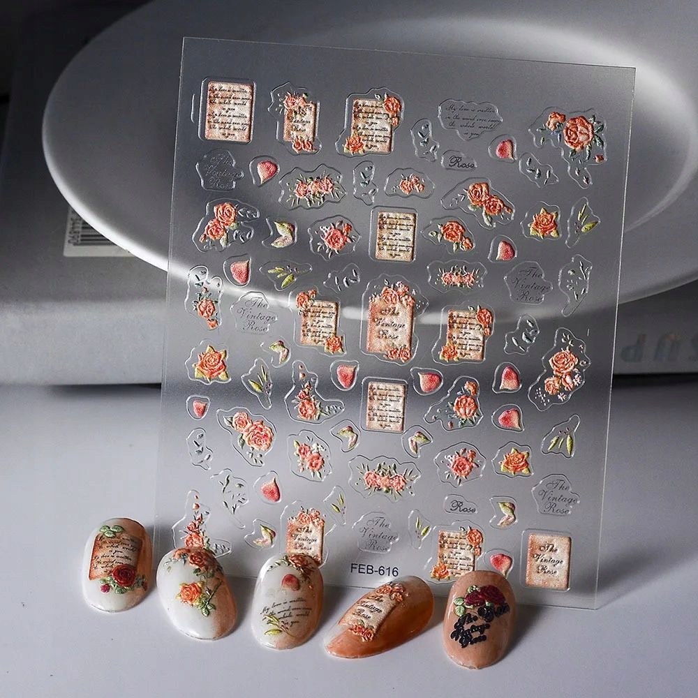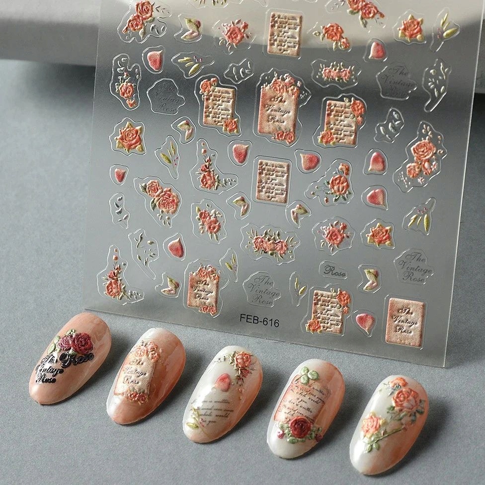 3D nalepke za nohte Samolepilne konveksne vzorci NAPISKI CVETJE VRTNICA Celoten opis