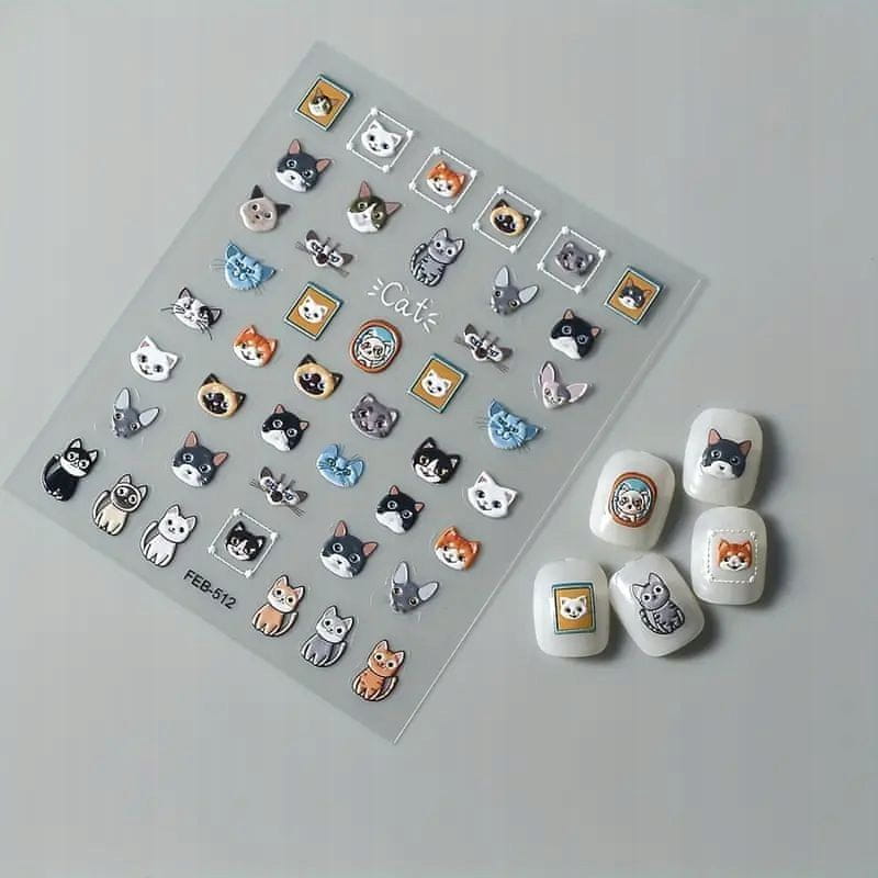 3D nalepke za nohte samolepilne reliefne vzorce MAČKE Celoten opis