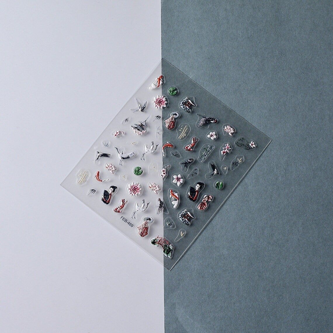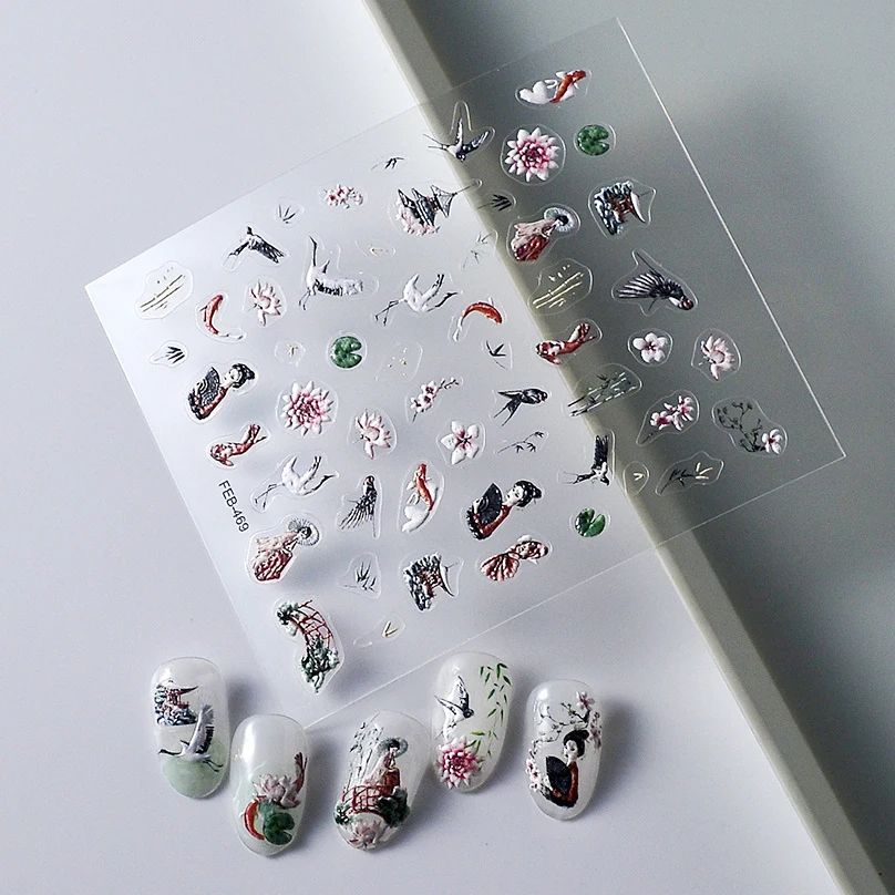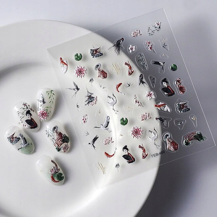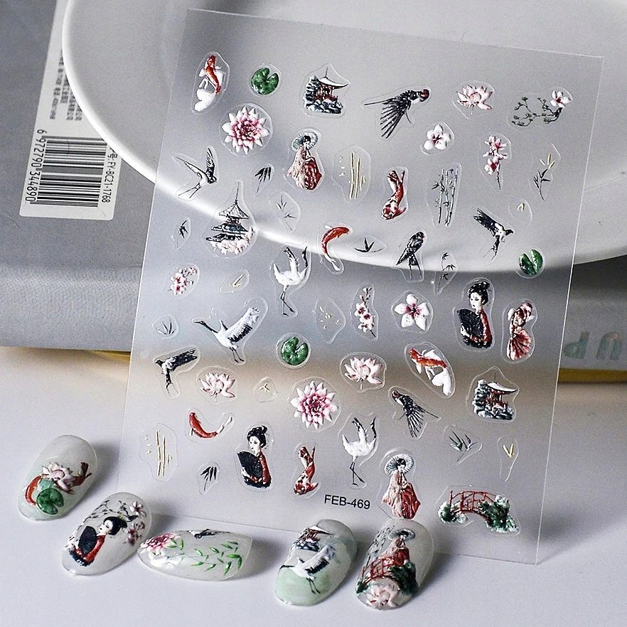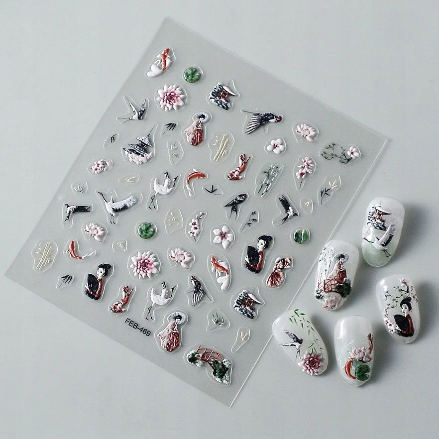 3D nalepke za nohte samolepilne konveksne vzorce JAPONSKA Celoten opis