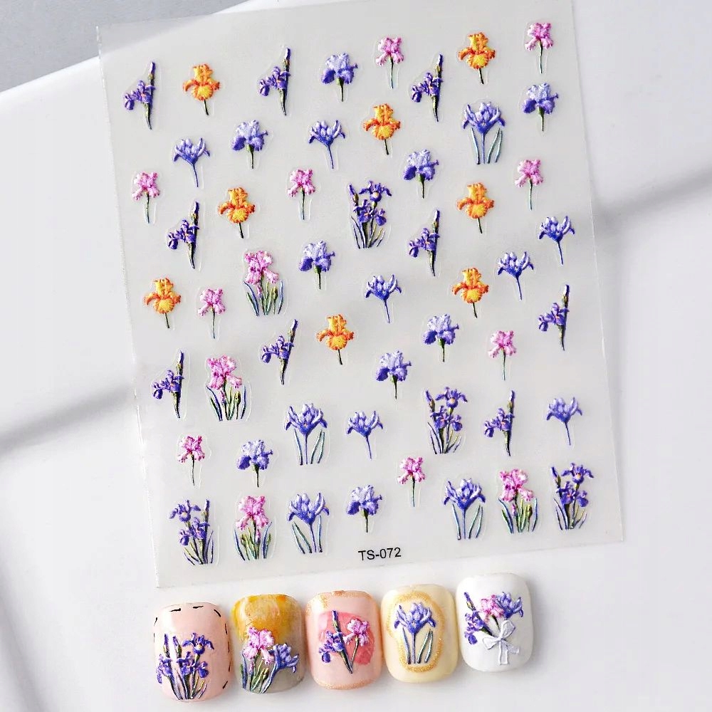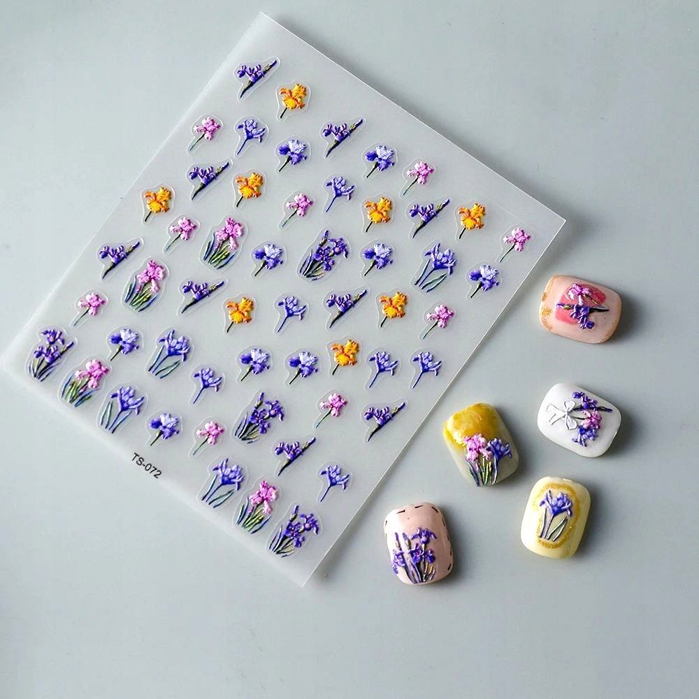3D nalepke za nohte Samolepilne konveksne vzorci SPOMLADANSKO CVETLIČJE TRAVNIK Celoten opis