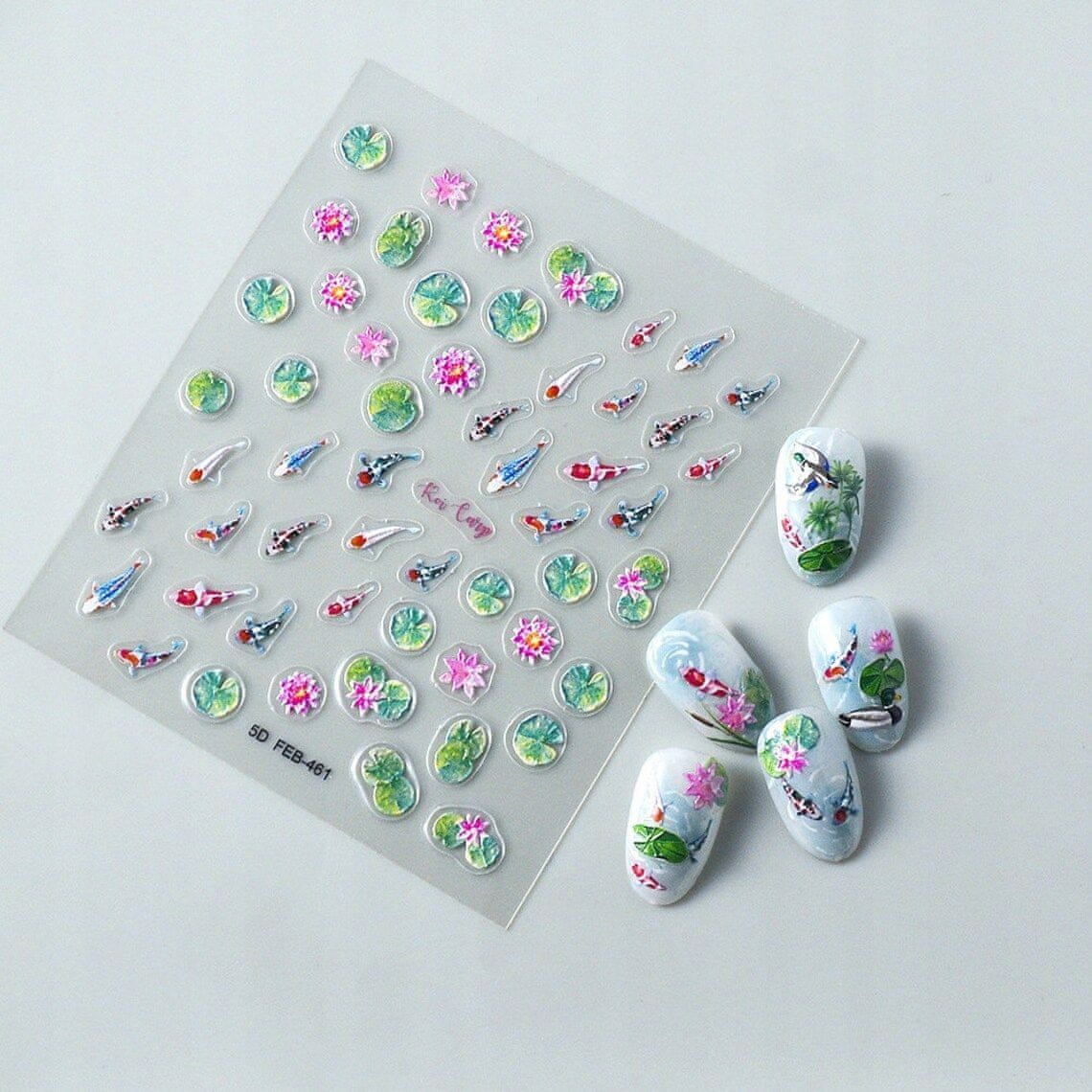 shumee 3D nalepke za nohte s samolepilnimi konveksnimi vzorci RIBE, KOI KRAP