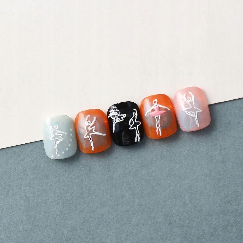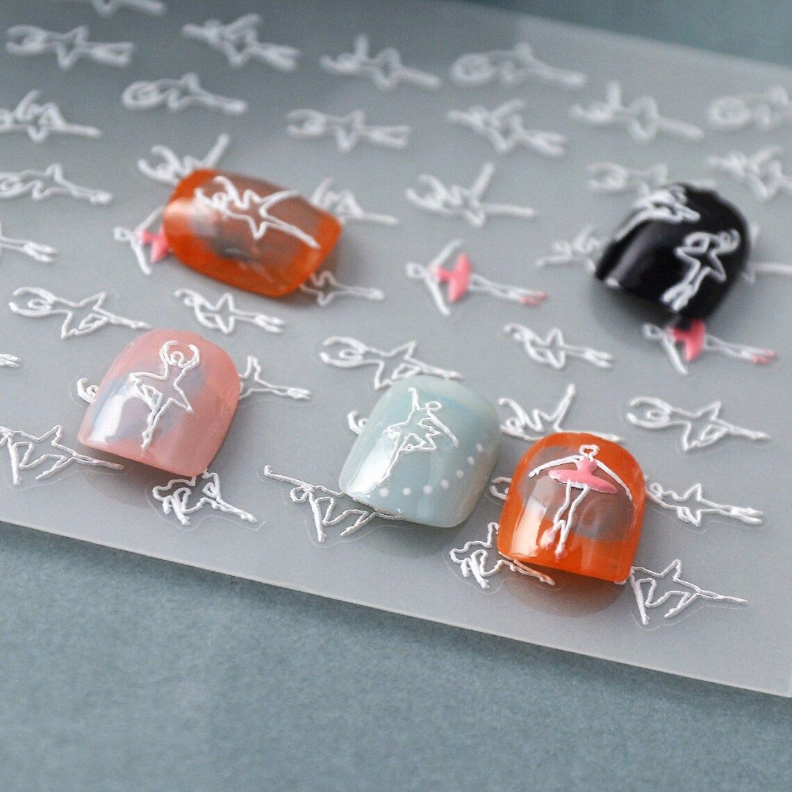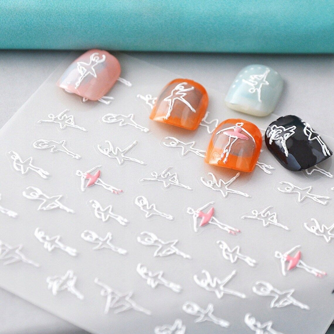 shumee Samolepilne 3D konveksne nalepke za nohte z vzorci baletnih plesalcev