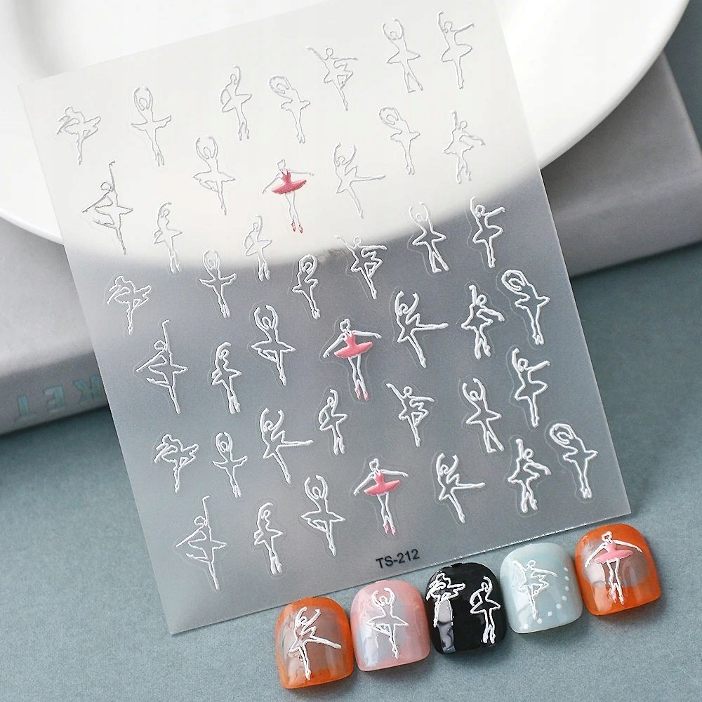 Samolepilne 3D konveksne nalepke za nohte z vzorci baletnih plesalcev Celoten opis