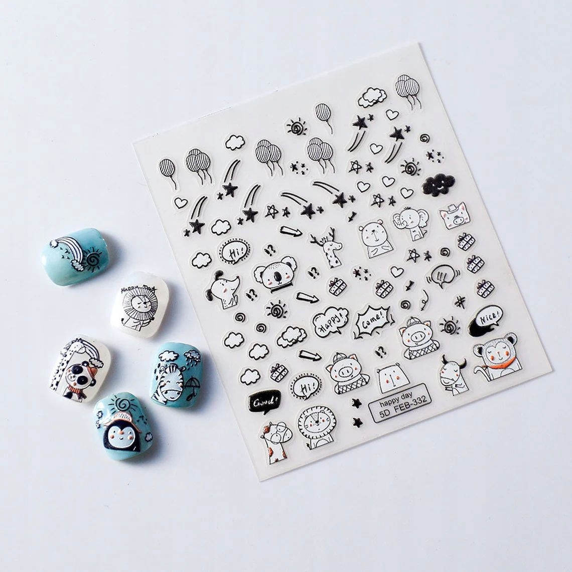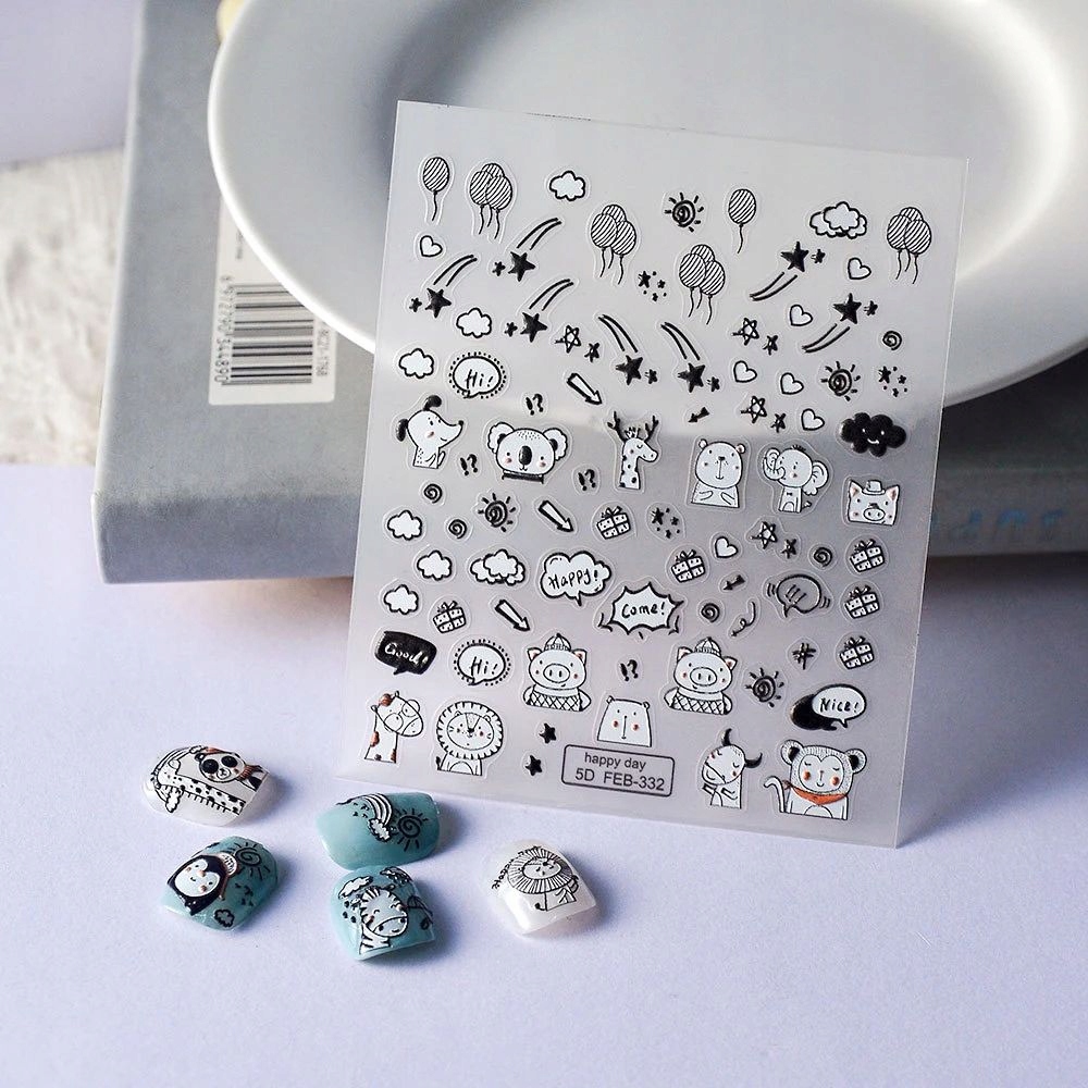 shumee Samolepilne 3D konveksne nalepke za nohte z vzorci ŽIVALI, DARILA