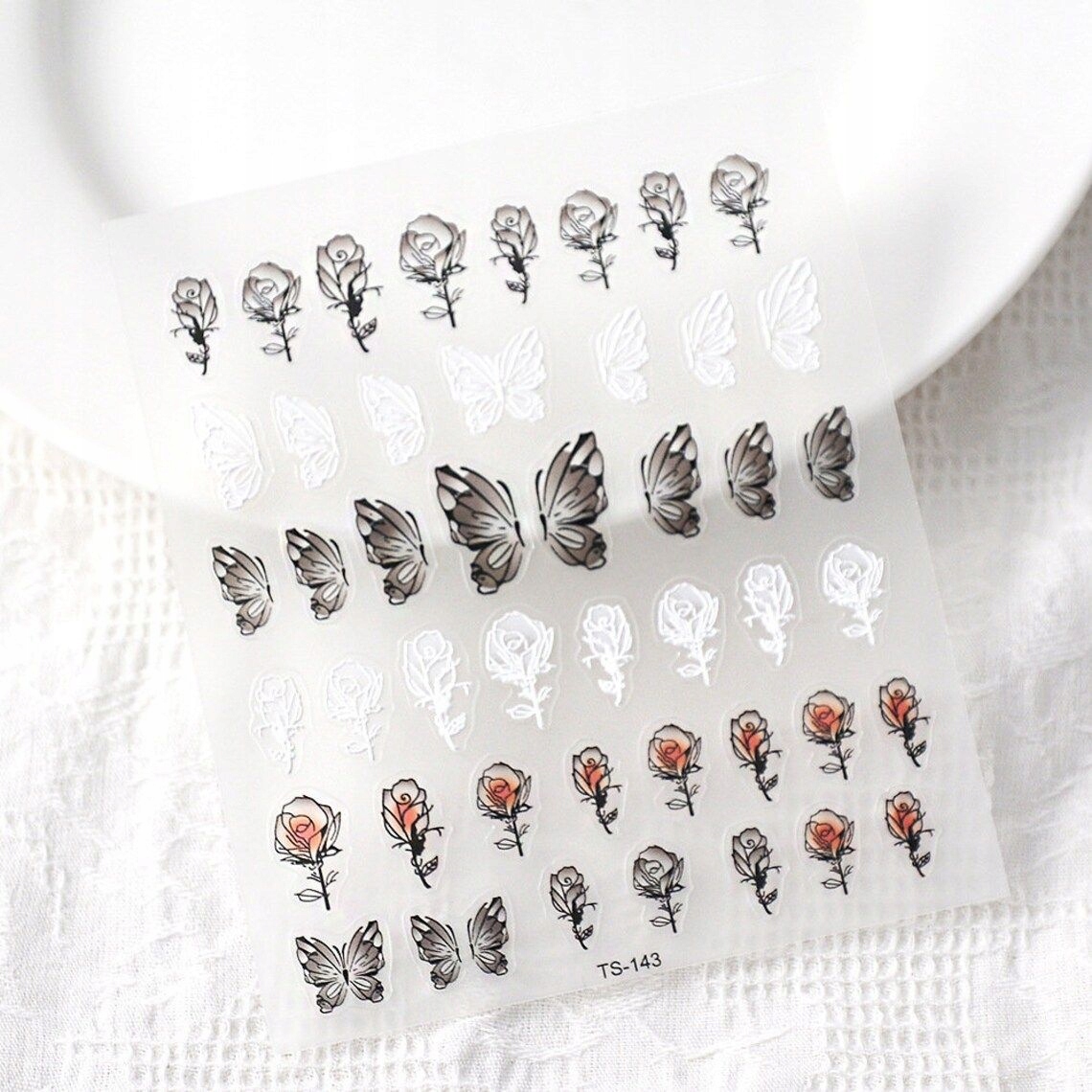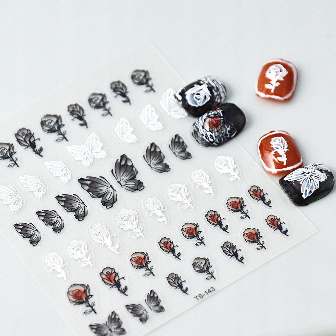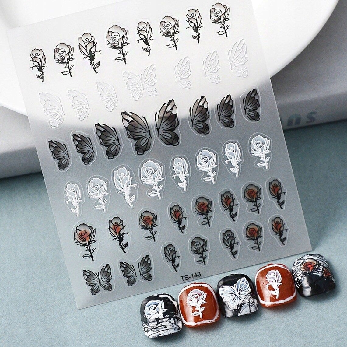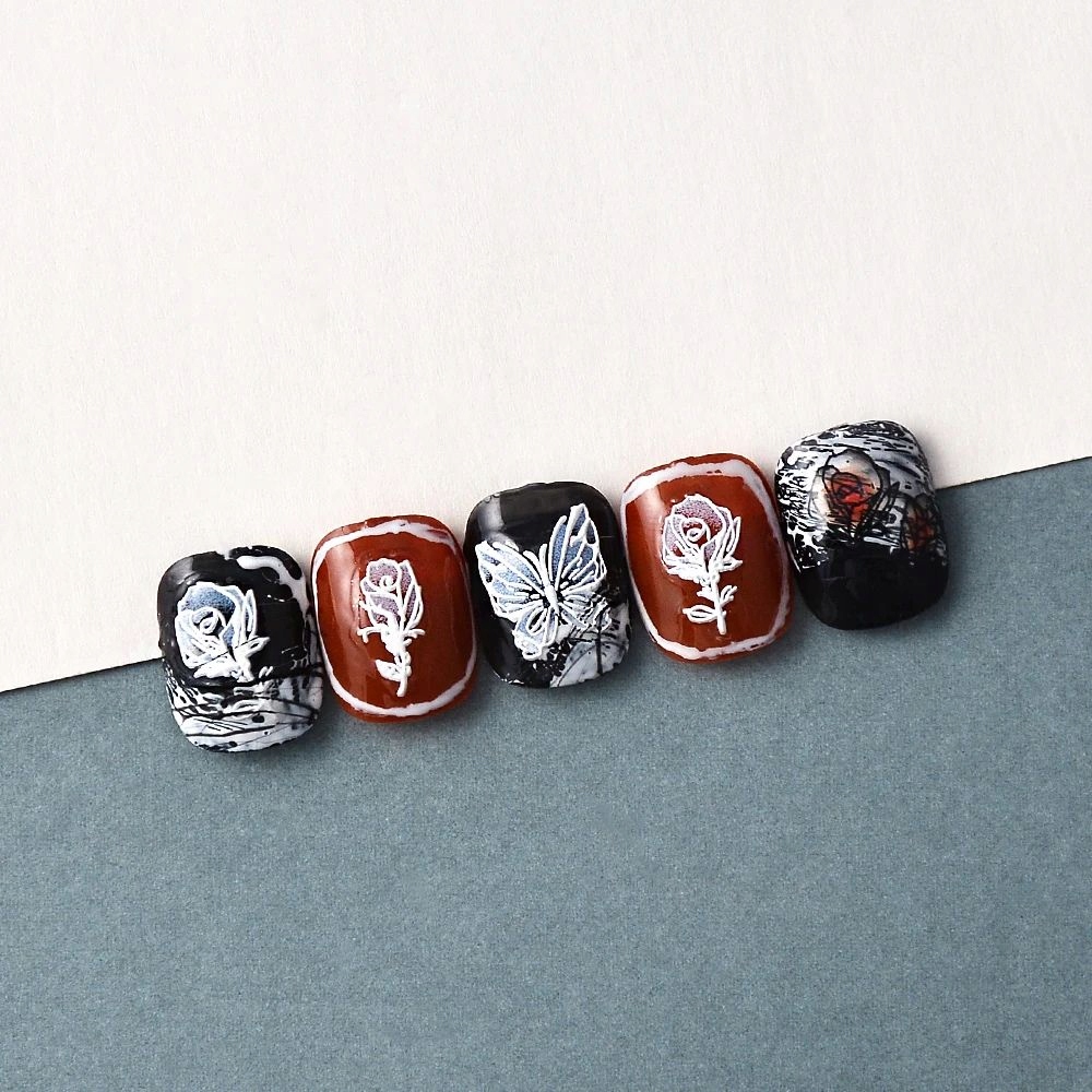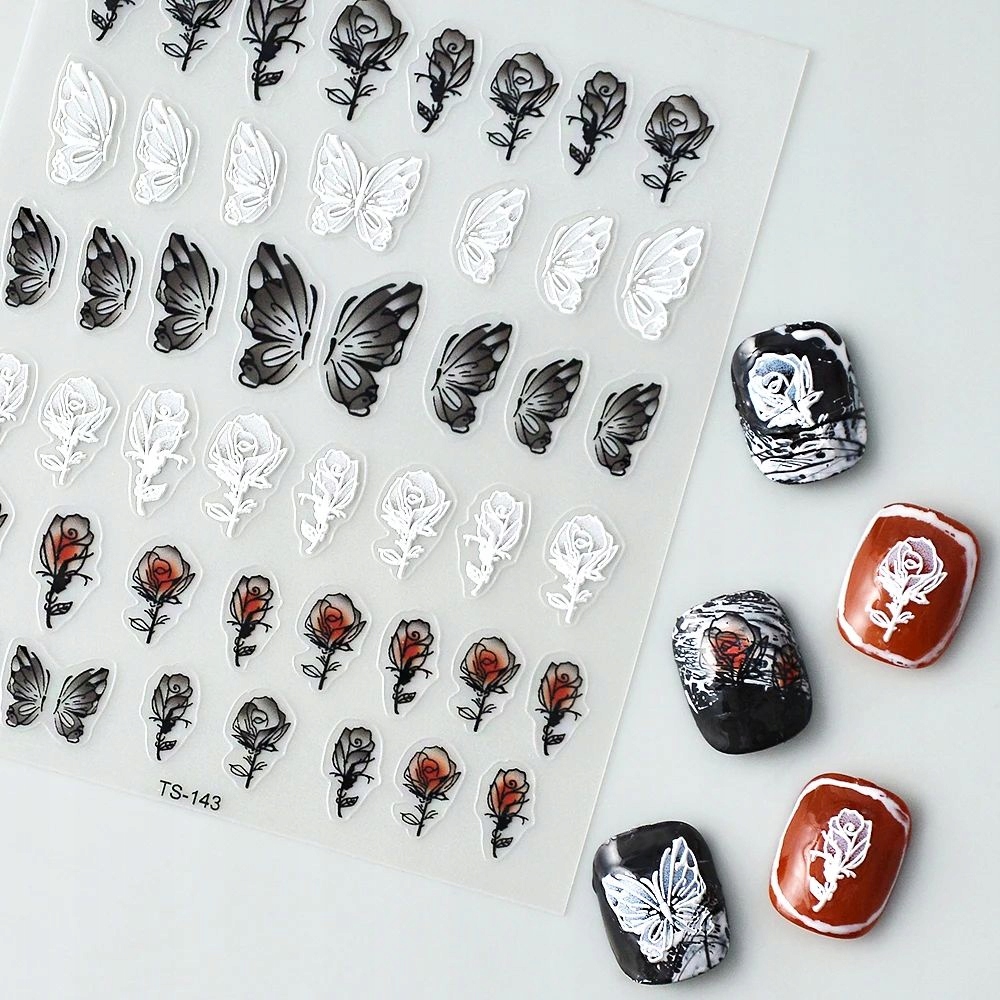 Samolepilne 3D konveksne nalepke za nohte z vzorci metuljev in vrtnic Celoten opis