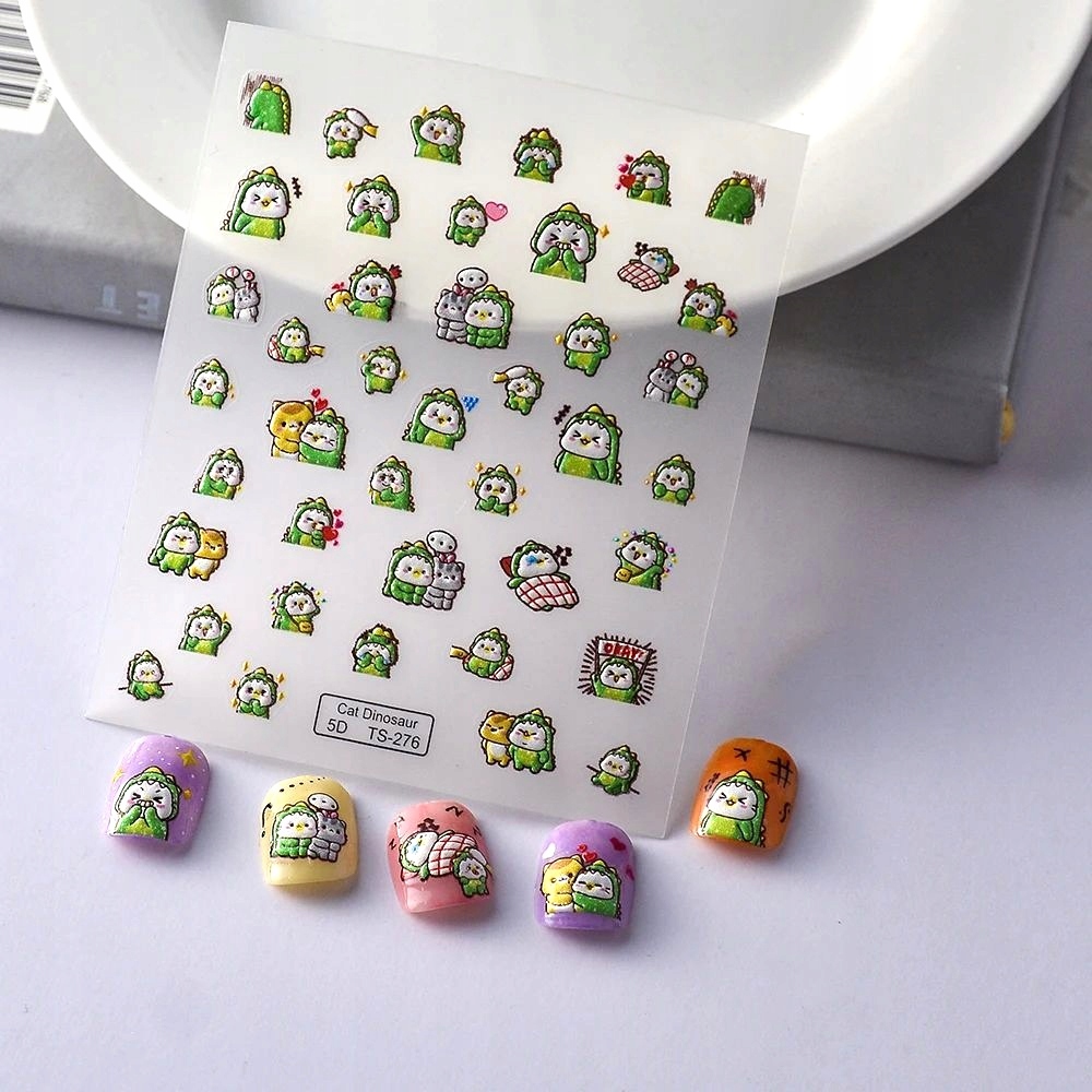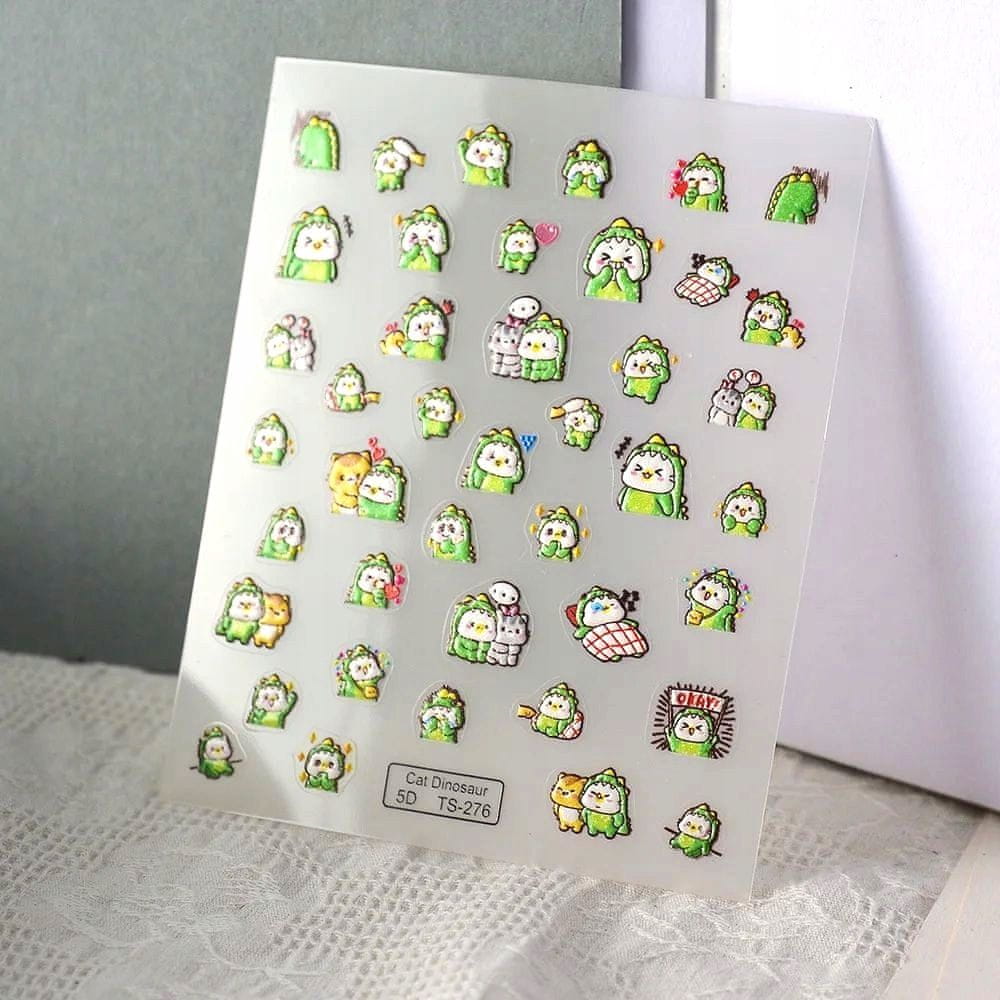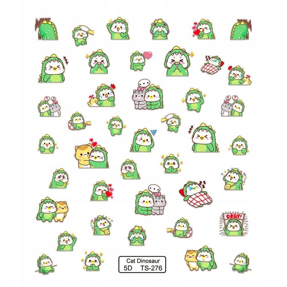 Samolepilne konveksne 3D nalepke za nohte z vzorci MAČKA DINOZAVER Celoten opis