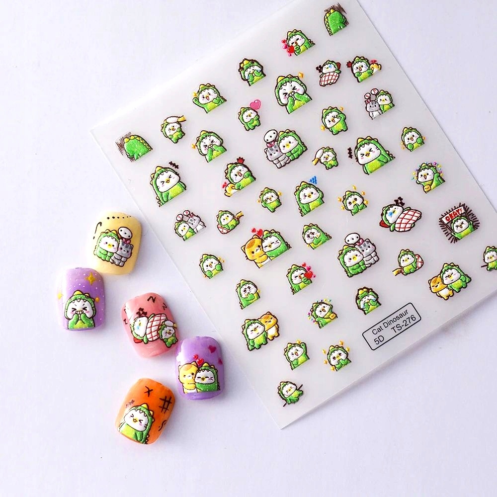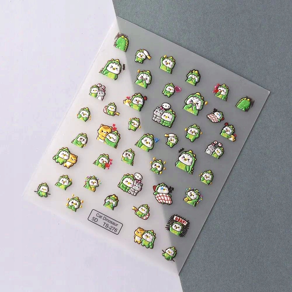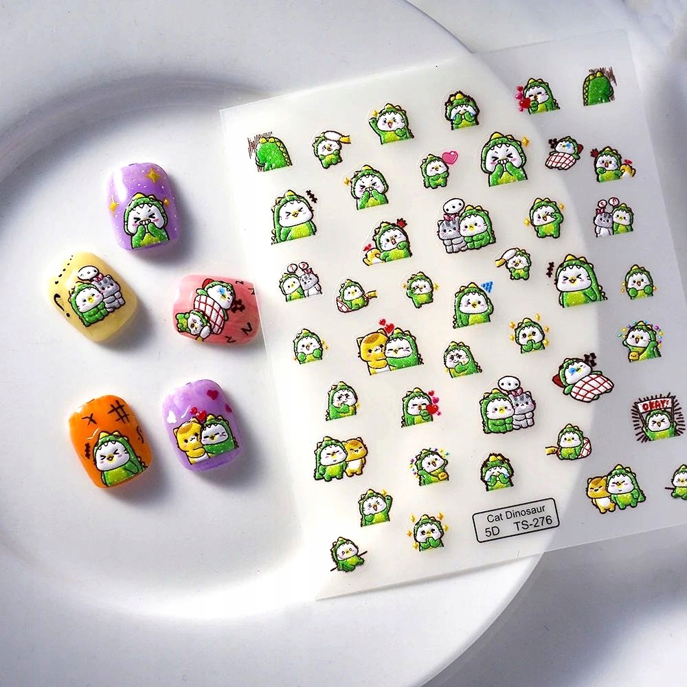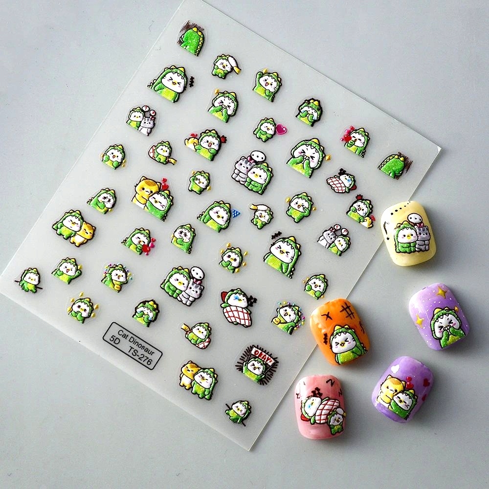 Samolepilne konveksne 3D nalepke za nohte z vzorci MAČKA DINOZAVER Celoten opis