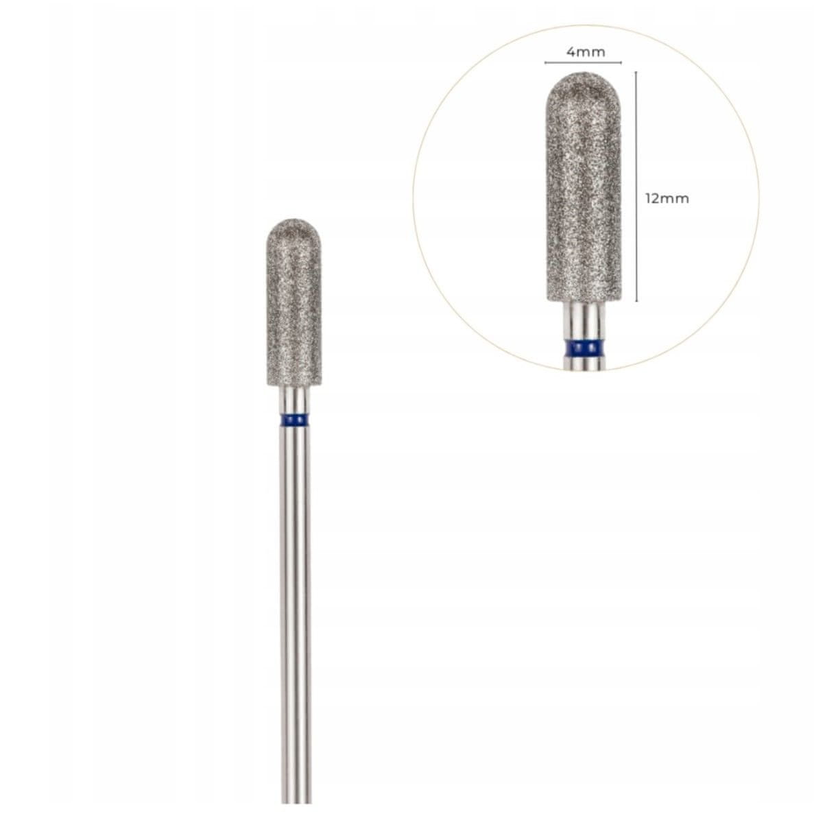 SAUTE NAILS Diamantni rezalni rezalnik za obnohtno kožico – št. 08 Diamantni cilindrični rezalnik za odstranjevanje obnohtne kožice. Glava rezalnika ima premer 4 mm in dolžino 12 mm, kar omogoča učinkovito, a hkrati nežno odstranjevanje obnohtne kožice brez tveganja poškodb okoliške kože ali nohtne plošče. Delovna površina rezalnika je prekrita z drobnozrnatim diamantnim premazom, ki je znan po svoji vzdržljivosti in učinkovitosti pri tehnikah manikure. Takšen premaz zagotavlja dolgo življenjsko dobo orodja in omogoča delo z visoko natančnostjo. Steblo rezalnika ima modro črto, ki označuje stopnjevanje. Univerzalni premer stebla – 2,35 mm. Če iščete orodje, ki bo izboljšalo kakovost vaših manikirnih storitev, je diamantni rezalnik odlična izbira. Vašim strankam bo zagotovil udobje med postopkom, vam pa zadovoljstvo z delom na najvišji ravni.
