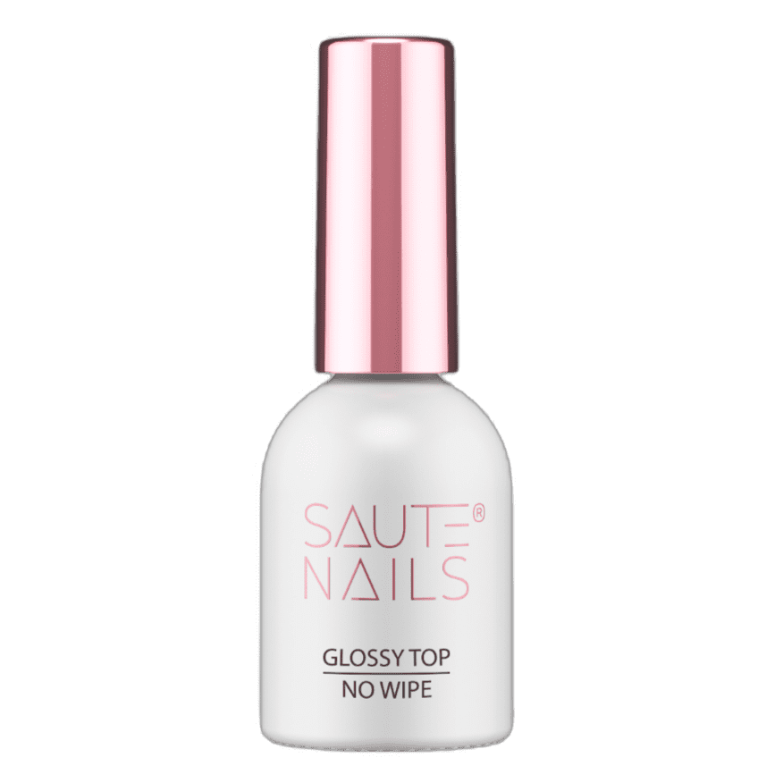SAUTE NAILS Hibridni nadlak GLOSSY TOP Brez brisanja – 8 ml Srednje gost prozoren nadlak brez disperzije, idealen za zaključek hibridnega in gel oblikovanja. Na beli barvi ne rumeni, črne ne razbarva. V svetilki se ne sveti modro. Zagotavlja sijaj do 3 tedne. Konsistenca omogoča zapolnitev neenakomernosti. Navodila za uporabo: Po nanosu sušite v dvojni LED-lučki 30–60 sekund.