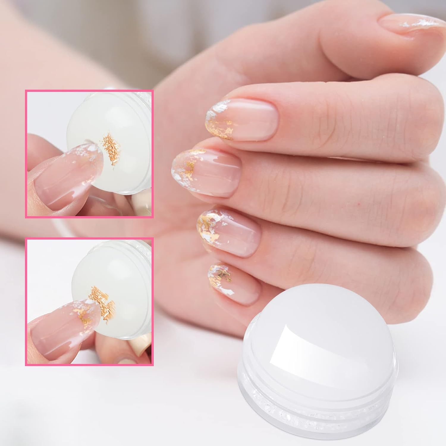 ŠTAMPILKA ZA OKRAS NOHTOVje inovativno orodje, ki vam omogoča ustvarjanje osupljivih in dolgotrajnih dizajnov na vaših nohtih. Glava štampiljke je izdelana izmehak in lepljiv silikon, kar zagotavlja odličen oprijem in enostaven prenos dizajna. Zahvaljujoč večjemu premeru glave4 cm, je štampiljka idealna za dekoriranje celotnih dizajnov, kar olajša postopek dekoriranja. Poleg tega njegova dolžina  4 cm in  omogoča udobno in ergonomsko uporabo. Komplet vključuje tudi  dva vzorčasta krožnika  in  holo transfer folija  , kar bistveno razširi vaše ustvarjalne možnosti pri ustvarjanju manikure.
