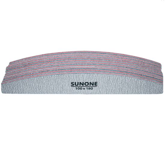 SUNONE PILA ZA NIHTE BOAT 100/180 SIVA – 10 kosov Profesionalna pilica priznane blagovne znamke SUNONE. Njena poenostavljena oblika omogoča natančno piljenje tudi najbolj nedostopnih mest. Naše pilice so izdelane iz visokokakovostnega brusnega papirja, obloženega z gobico EVA. Pilo odlikuje izjemna vzdržljivost in učinkovitost, zahvaljujoč dodatni ojačitvi na gobici (rdeča sredina). Popolna za vse salonske in domače aplikacije.
