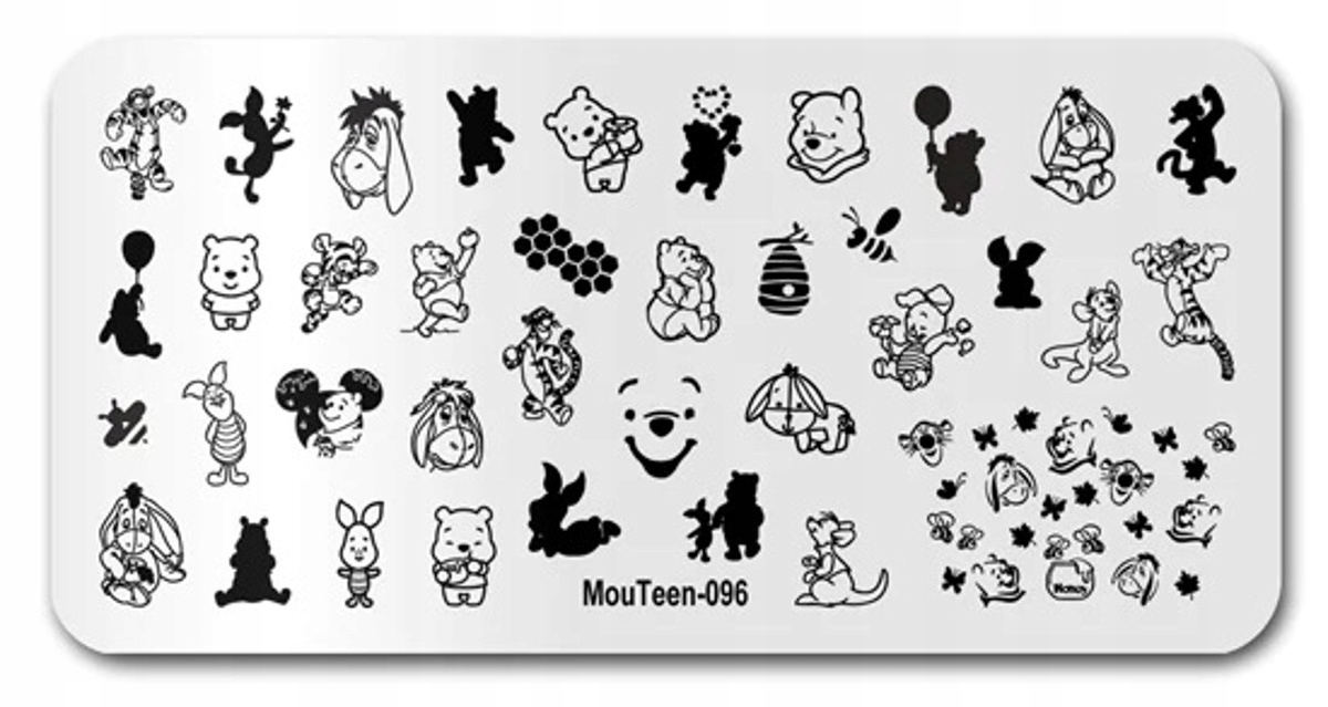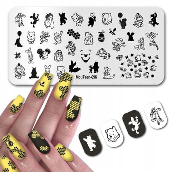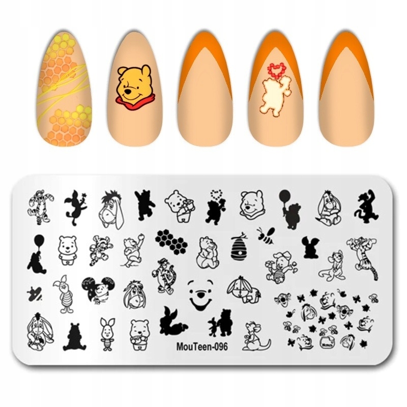 Žigosanje plošče za nohte z vzorci plošč za poslikavo nohtov WINNIE THE POOH FAIRY TALLE Celoten opis