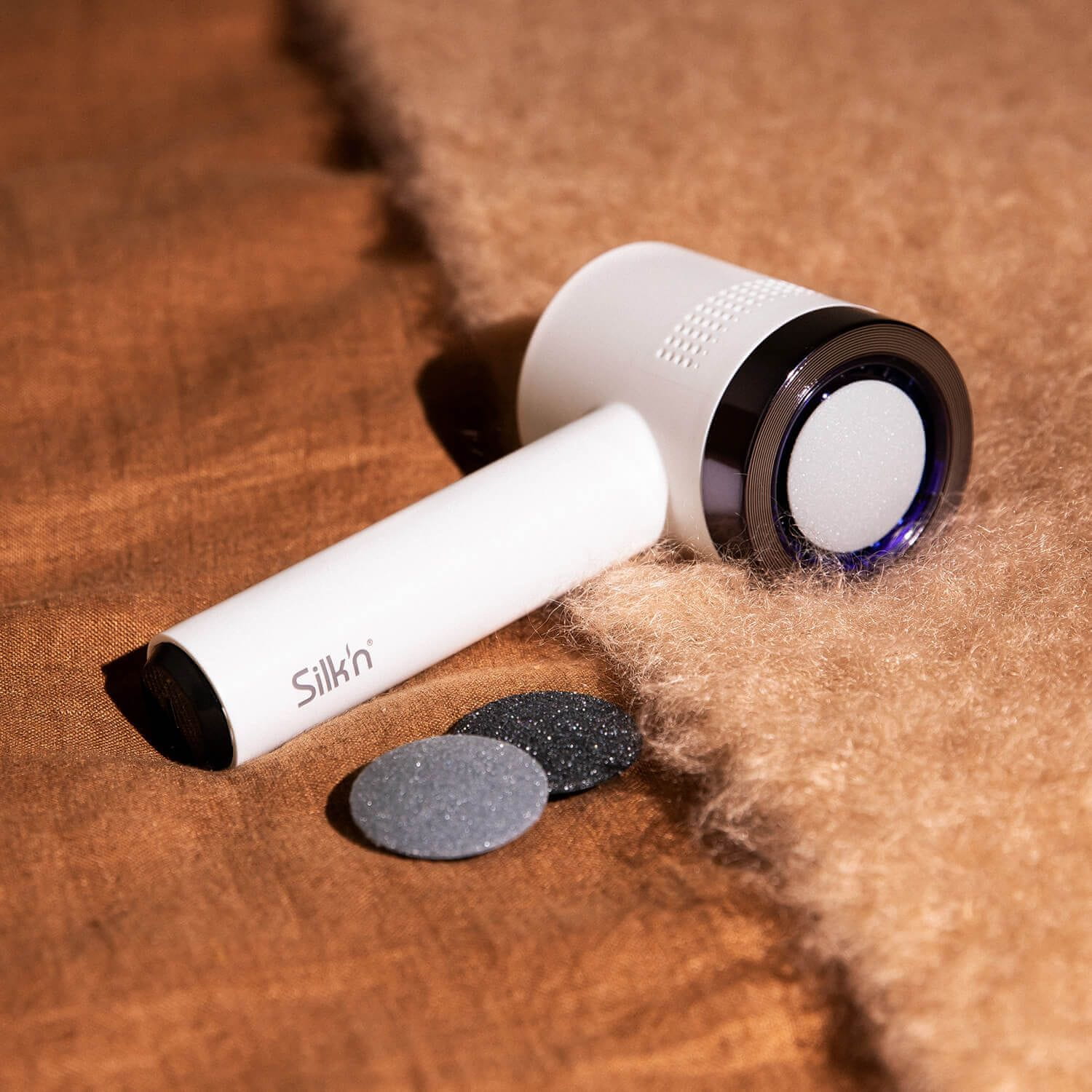 • Silk'n VacuPedi ponuja 3 brusilne plošče za izbiro finega, srednjega ali grobega pilinga, poleg 3 pralnih, zamenljivih filtrov za zajemanje odmrlih kožnih lusk.