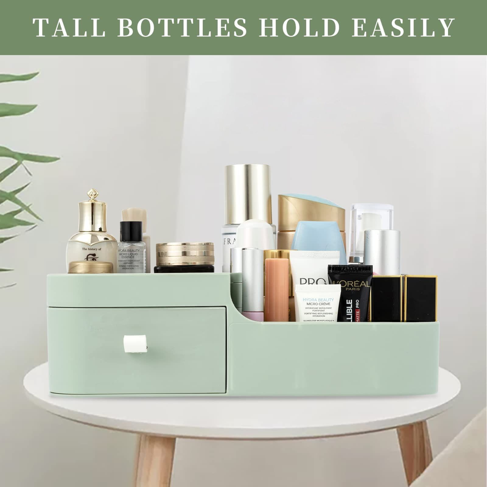 Nikcorp Organizator za kozmetiko in ličila s predalom | Posoda za shranjevanje na mizo ali toaletno mizico | Zelena 26x17 cm