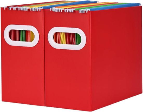 Nikcorp Organizator za dokumente A4, škatla iz kartona s kovinskim ročajem, zložljiva, komplet 2 kosa, rdeče barve