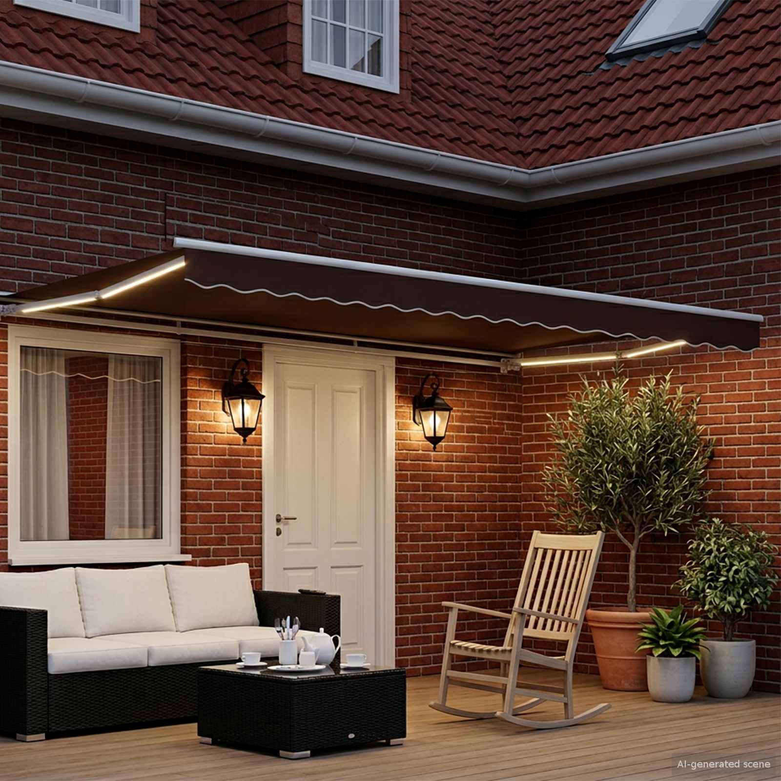 • Vgrajena luč: Opremljena z LED lučmi, tenda ne le nudi senco čez dan, ampak tudi osvetljuje vaš zunanji prostor ponoči. Energijsko varčne LED diode oddajajo prijeten, topel sijaj, ki prispeva k vsakemu večernemu srečanju.