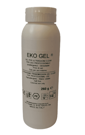 EKO GEL za kavitacijo in ultrazvok EKO GEL je hipoalergen in prijazen do sond in popolnoma vodotopen. Nižja viskoznost zagotavlja manjšo porabo, saj se gel lepše nanese na kožo in kontakte. Gel za ultrazvok je vodotopen ni masten in ne draži kože. Ne vsebuje abrazivnih sredstev ter ne poškoduje ultrazvočne opreme. EKO GEL je namenjen za medicinsko diagnostiko in terapije ter kozmetične tretmaje. Priporočljiv za vse vrste postopkov pri katerih je potreben viskozni gel. Ne draži kože in je topen v vodi. Gel je primeren kot mazivo oziroma lubrikant.