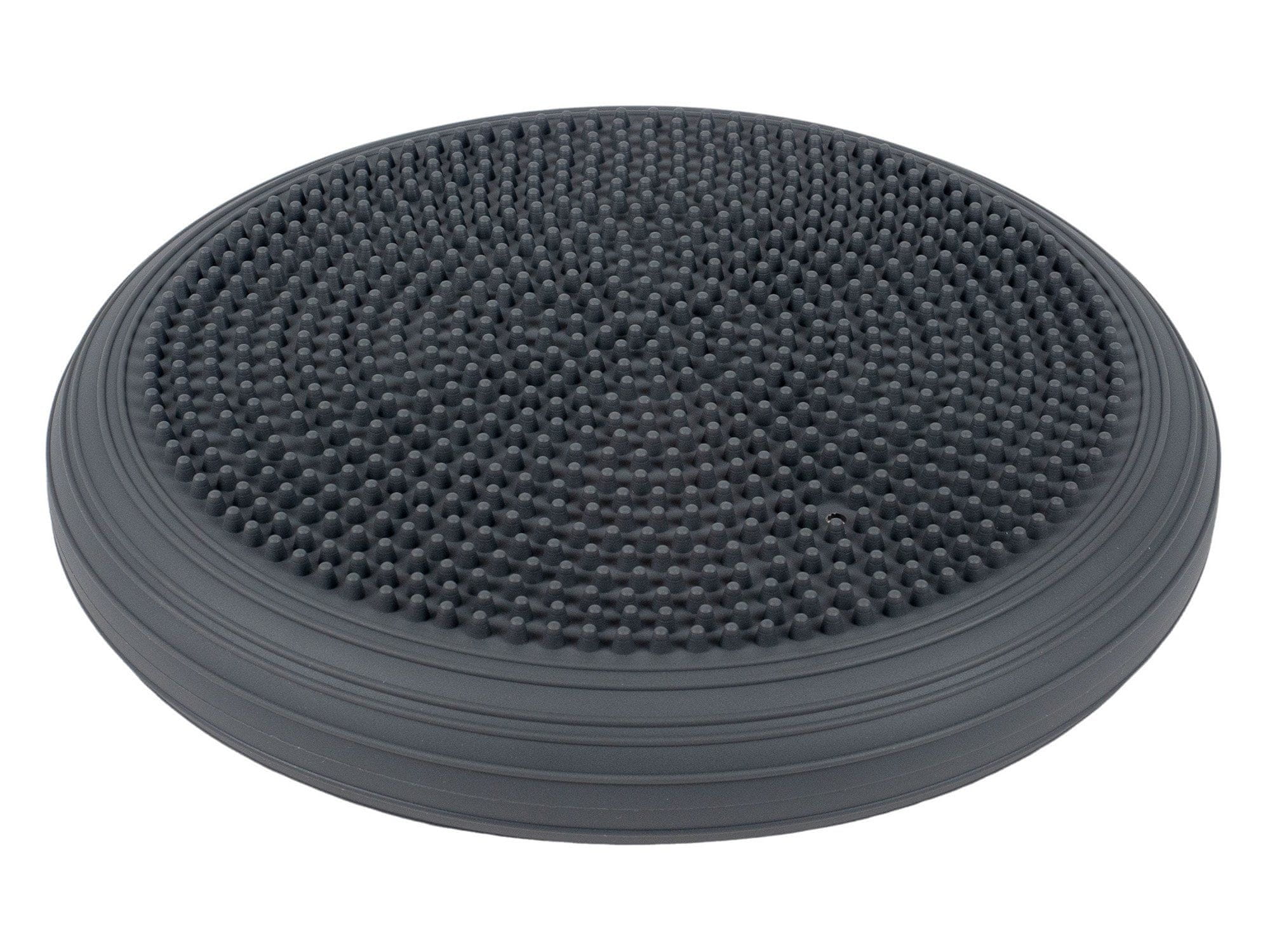 Ta blazina za ravnotežje in masažo (v obliki leče) s premerom 33 cm ima širok spekter uporabe – za športno vadbo, rehabilitacijo in različne terapevtske vaje. Primerna je za vse vrste vaj z lastno težo, trening ravnotežja, vaje za krepitev in zdravo sedenje. Izbočena oblika in masažni izrastki izboljšujejo držo, lajšajo bolečine v hrbtu ter so idealni za sprostitev in krepitev telesa. Blazina je izdelana iz visokokakovostnega in trpežnega PVC. IGLA NI VKLJUČENA. Nosilnost blazine je 120 kg. Barva siva Blazino lahko po potrebi napihnete ali izpraznite do želene trdote. Blazino lahko uporabljate v pisarni, doma in na poti. Pravilno držo lahko dosežete, ko sedite na delno napihnjeni blazini. Masažni izrastki lahko pomagajo pri stimulaciji refleksnih delov stopal.