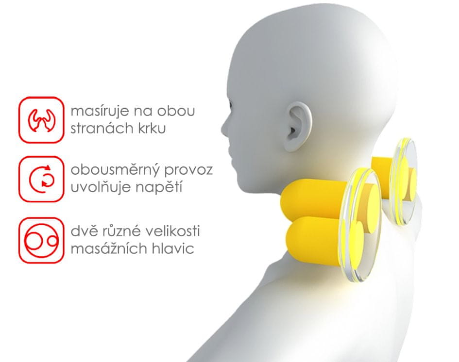 • Dva para velikih masažnih glavic imitirata gibanje rok maserja