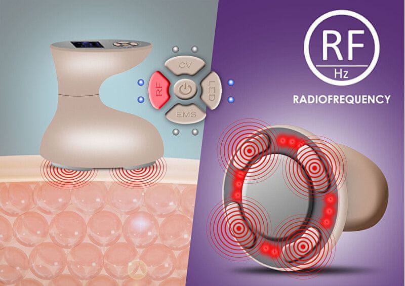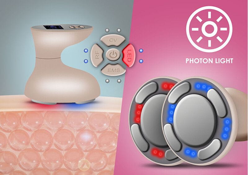 - Ultrazvočna valovi.2. Radiofrekvenca.3. Fotonska terapija (rdeča in modra svetloba).4. Električni pulzy.Ultrazvukov valoviGlava aplikatorja ustvarja visokofrekvenčne ultrazvočne valove, ki prodirajo v podkožje pri frekvenci 1 MHz. Tkiva nato absorbirajo tako ustvarjeno energijo. Celovitost maščobne celice je ogrožena in maščoba se sprosti. Sproščena maščoba se razgradi na glicerol in proste maščobne kisline. Glicerol služi kot vir energije, medtem ko se maščobne kisline prenesejo v jetra, kjer se predelajo kot običajne maščobne kisline iz hrane in se naravno izločijo iz telesa. Odstranjena maščoba se ne vrne v tkivo. Ultrazvočna kavitacija je neboleča, neinvazivna, nežna, učinkovita in, kar je najpomembneje, trajna metoda za zmanjšanje količine maščobe na najbolj problematičnih predelih. RadiofrekvencaAplikator ob nanosu na zdravljeno področje sprošča energijo z zelo specifično močjo in frekvenco. Radiofrekvenčni valovi so optimizirani tako, da povzročijo toplotni gradient, ki pomembno vpliva na procese v plasti dermisa. Posredovana energija aktivira preoblikovanje kolagenskih vlaken in elastina. Največje možno usmerjanje energije tudi na mesta z izrazitejšo maščobno plastjo in posledično vzbujanje presnovnih procesov pomembno vplivata na zelo učinkovito glajenje povešenih in deformiranih kontur.junijsvetloba spodbuja naravno proizvodnjo kolagenazvišuje učinkovitost absorpcije aktivnih sestavin kozmetičnih izdelkovizboljšuje prekrvavitev podkožnega tkivapreprečuje nastajanje pigmentaModra svetloba – aktivira porfirine (sproži kemično reakcijo, ki uničuje škodljive bakterije)- antibakterijski in protivnetni učinek- preprečevanje nastanka aken- varno in učinkovito zdravljenjeEMS električni impulziMultifunkcijska aplikacijska glava aparata BeautyRelax Celluform Optimal ustvarja nežne električne impulze. Moč in frekvenca električnih impulzov sta posebej prilagojeni, da omogočata učinkovito, a nebolečo nego kože. Mišice se skrčijo in tako okrepijo. Kolagenska in elastična vlakna se mehansko stimulirajo. Koža je pomlajena in sijoča. Vse to neinvazivno in brez neprijetnih občutkov: Intenzivna stimulacija plasti dermisa za spodbujanje naravne proizvodnje kolagena. Povzročanje mišične napetosti v obraznih mišicah za njihovo krepitev. ciljno usmerjeno delovanje na maščobno tkivo na področju brade.Dosegljivo in vidni rezultati zmanjšanja podkožne maščobe tudi v primerih, ko maščoba raste zaradi mišične mase (zlasti pri moških ali športnih ženskah).Aktivna stimulacija maščobnega tkiva, osredotočena na predele ženskega in moškega telesa la.Shaped izrazitih oblin na rokah, nogah in telesu le.Partie, ki se lahko zdravijo z napravo: Obraz in brada (način FACE).podlakti (način BODY).roke (način BODY).trebuh (način BODY).stegna (način BODY).zadnjice (način BODY).teleta (način BODY).uporaba kontaktnega sonogela Uporaba naprave je vedno povezana s prozornim prevodnim gelom (ni priložen). Gel za uporabo, imenovan SONOGEL, lahko kupite v vsaki trgovini z medicinskimi pripomočki (lahko tudi v lekarni). Gel je zelo pomemben za uporabo naprave. Ustvarja potrebno vezno plast med aplikatorjem in kožo. Gel je na vodni osnovi. Ne more škodovati glavi aplikatorja. Uporaba aplikatorskega gela je bistvenega pomena. Ultrazvok, radiofrekvenca in impulzi EMS se bolje vežejo na kožo. Ne uporabljajte nobenih drugih kozmetičnih izdelkov.
